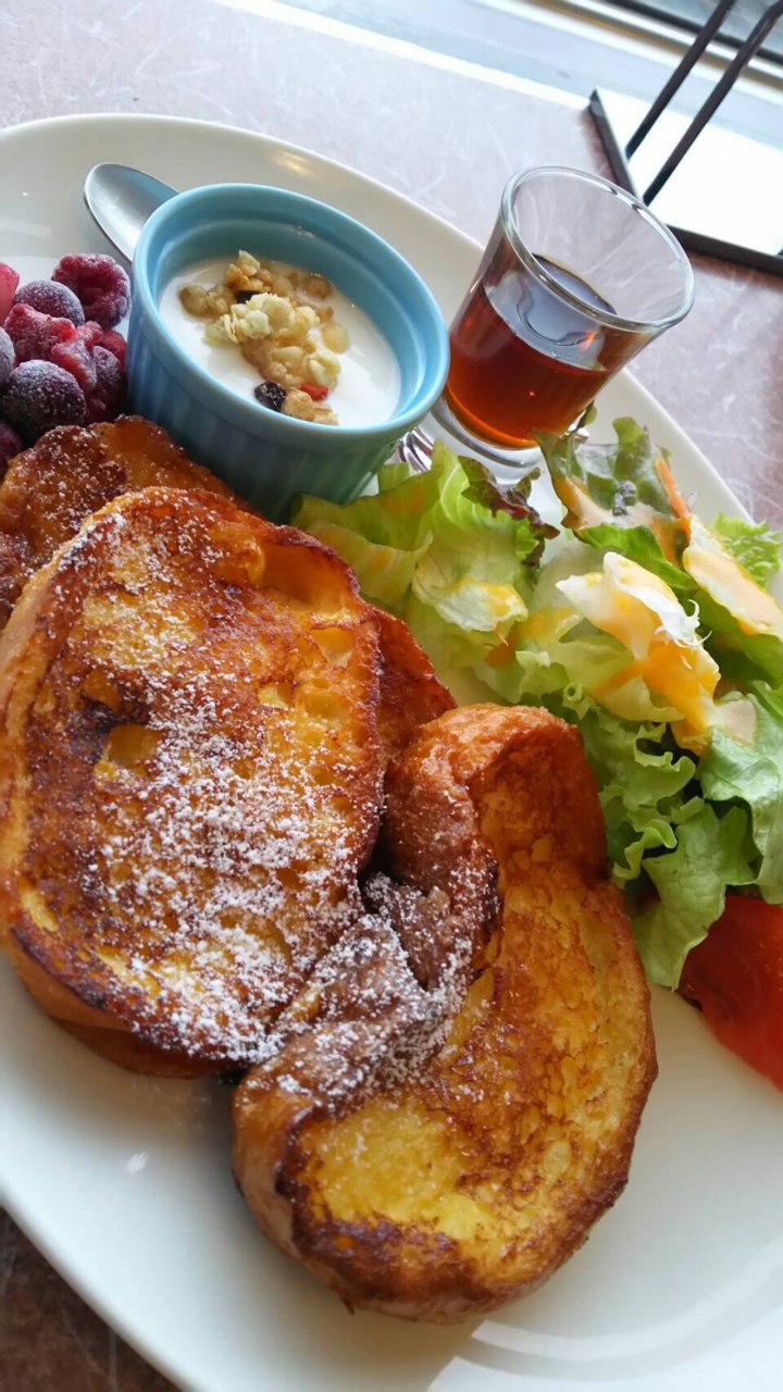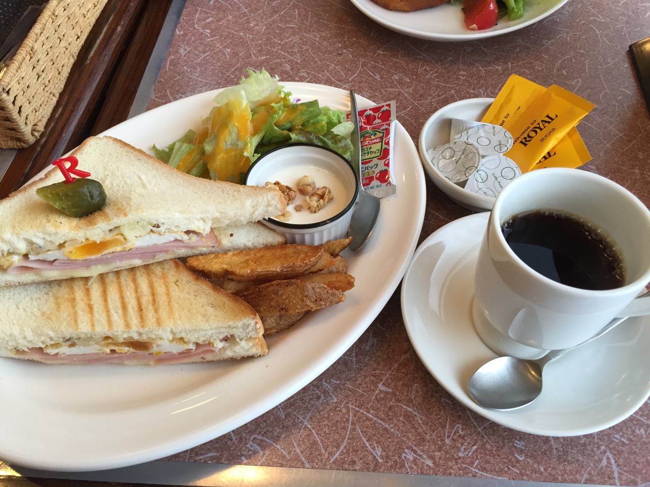 ロイヤルデリで、モーニングメニューから「フレンチトースト プレート」と「ハムサンド プレート」をいただきました。