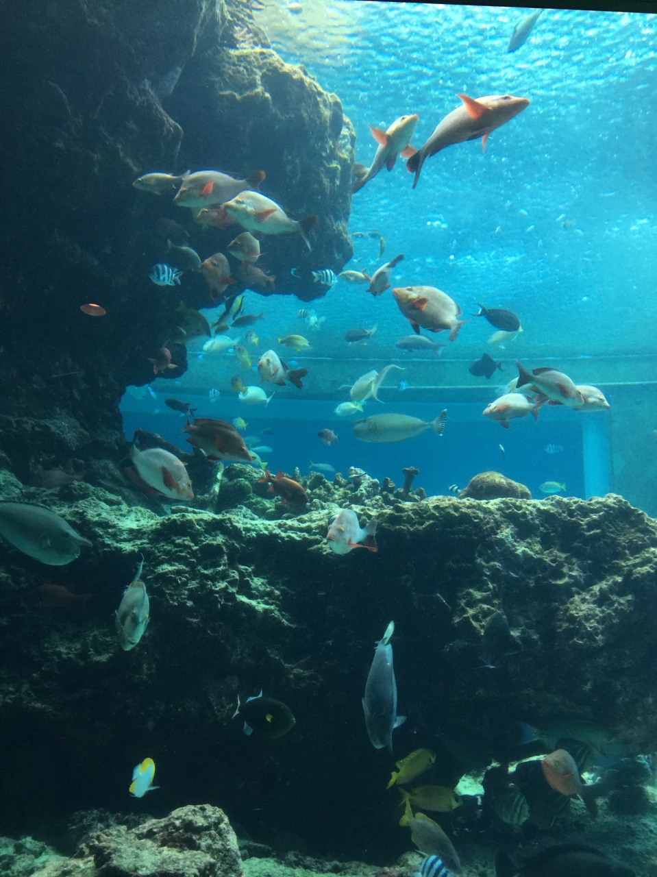 口コミにも必ずと言ってるほど大きな水槽の中で悠々と泳いでる魚たち(≧∇≦)見てるだけで海の中に自分も入ってるような感覚にとらわれます。雨が降ってる時でも館内が広いのでそんなに苦にはならないかな?もちろん天気が良ければ外に出て海を見に行けるスポットもあるしオススメしたいです。