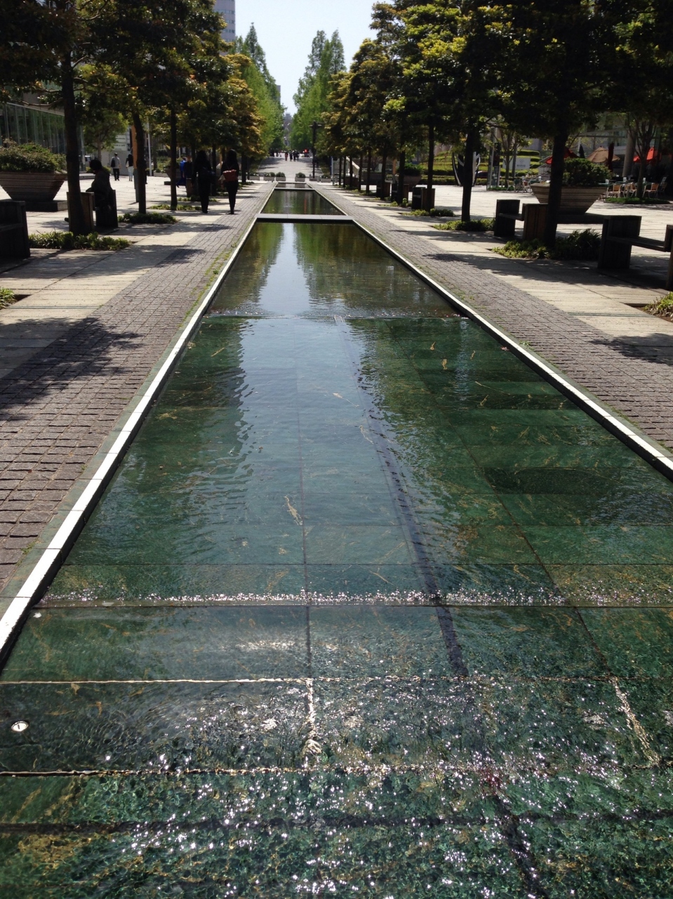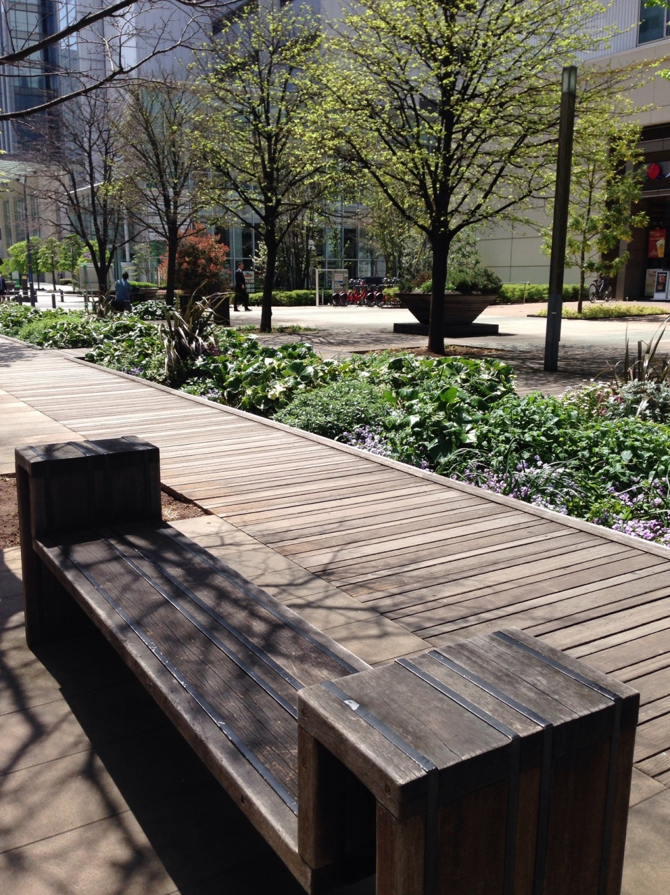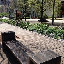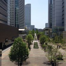 新高島駅からランドマークタワー方面へ伸びる 緑地公園。公園とゆうより、緑の多い遊歩道的な感じです。両サイドはビルですっきりしていて、花々や木、ウッドデッキ、心地よくセンスある公園。