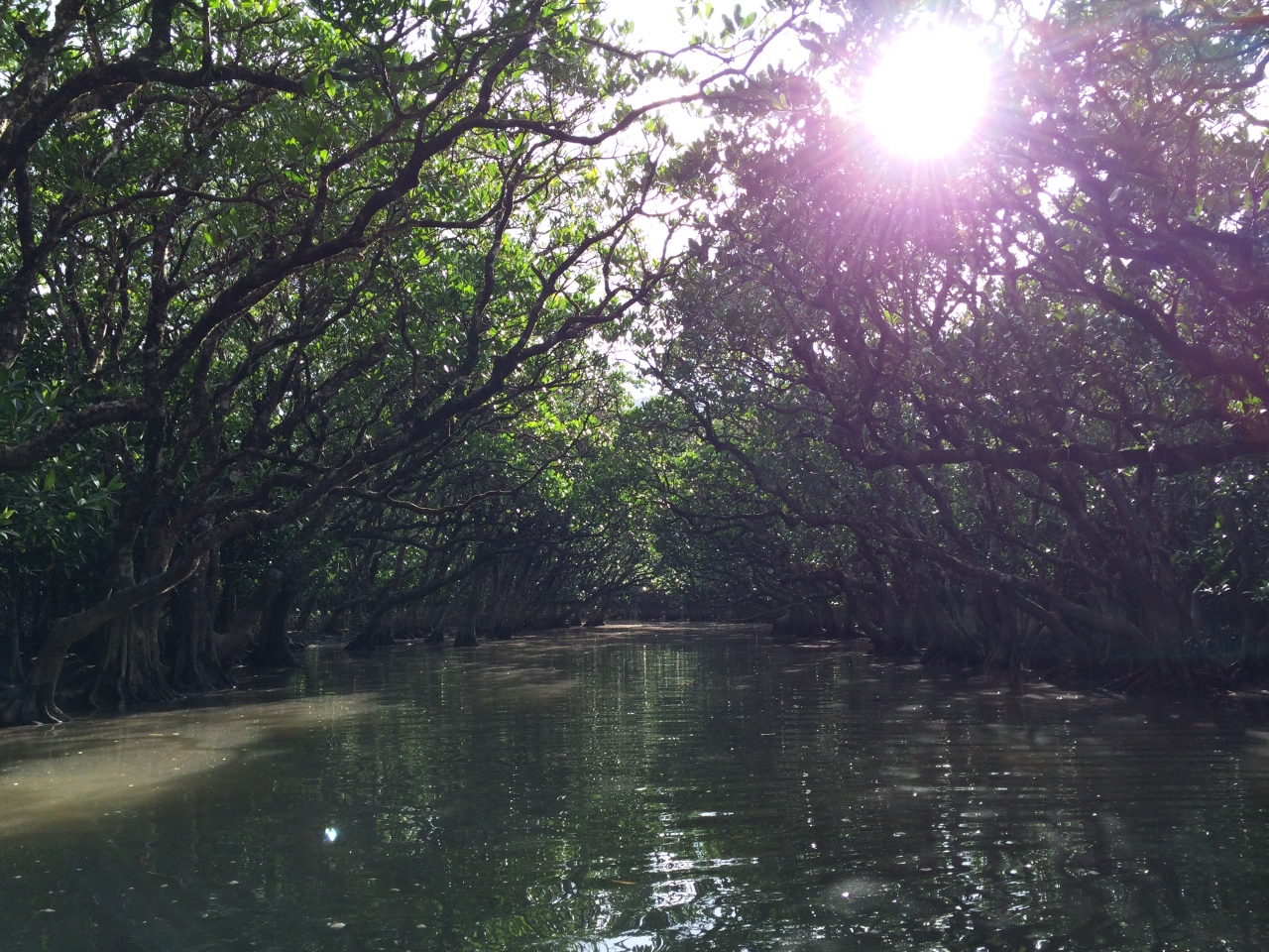 奄美でマングローブを楽しむなら、カヌーに乗りたいと訪れました。満潮まで待たないと水が干上がっているので、それまでは近くをドライブして楽しみました。ガイドのお兄さんがついてくれて、カヌーの漕ぎ方から教えてくれます。ゆっくりとマングローブの森を漕いでいるととても気持ちがよく、最高でした。川から見える山の絶景も素晴らしいです。