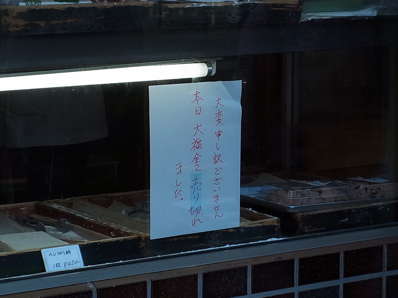 まあ遅かったんだろうな、と思い、1週間後に10時過ぎに来てみたら、またもや売り切れ。