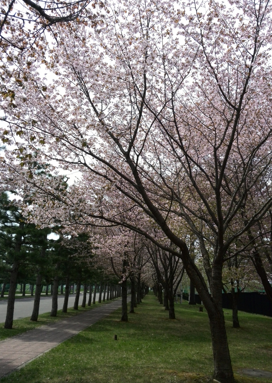 スタルヒン球場の裏手は、春にはきれいな桜がたくさん咲いています