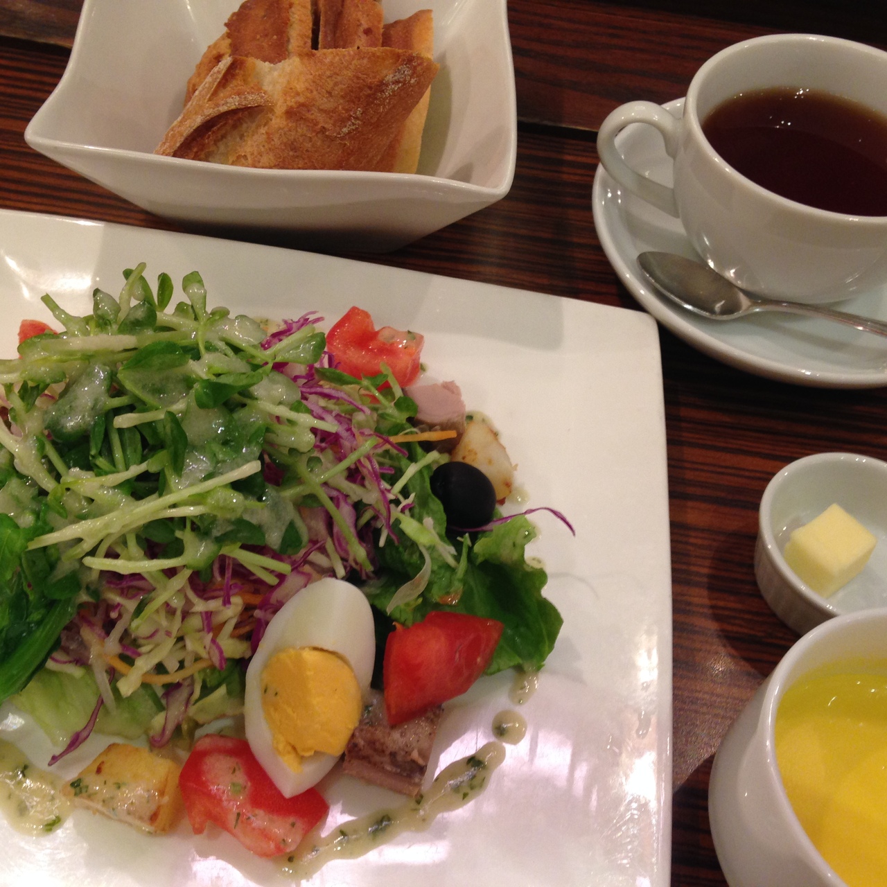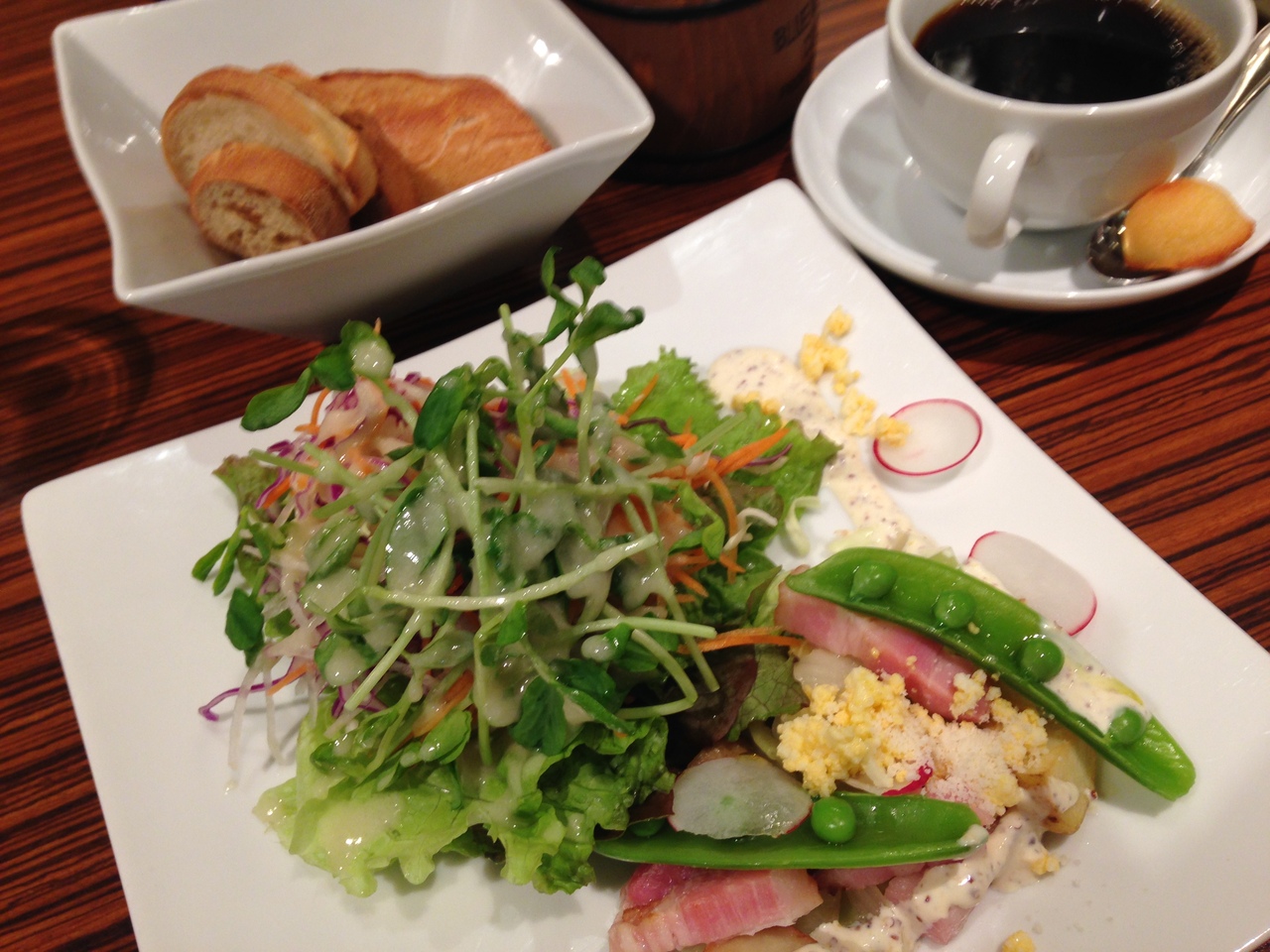 ランチで利用、店内のパンをカゴに入れて回ってくるので何種類も味わえます。どれも美味しいですが、定番くるみ入りが自分的にはイチオシ。イチジクのパンもいいですね。パンをいろいろ頂きたいため、いつも軽めのサラダランチ、たまには他のもトライしてみます。(加筆)最近はティータイムのタルトセットがお気に入りです。タルトはベリーと決まってるようですが、コーヒーか紅茶か選べて、ひと口サイズのフィナンシェみたいなのが付きます。またベリーのタルトがsoldoutでグレープフルーツ&ピスタチオのタルトになったこともあり、こちらもさわやかでした。