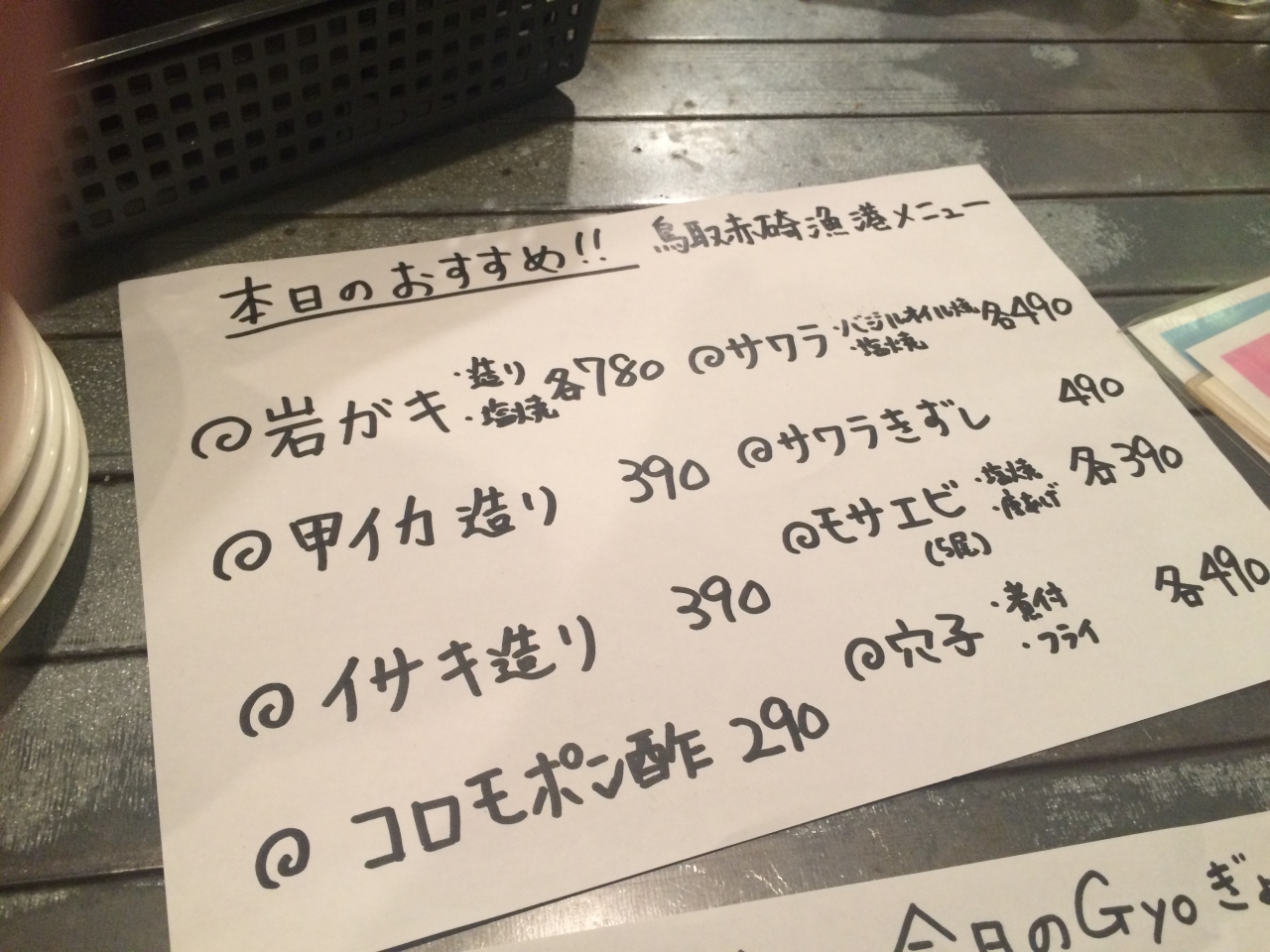 鳥取赤崎漁港で水揚げされた新鮮な魚介類をだす店のよう