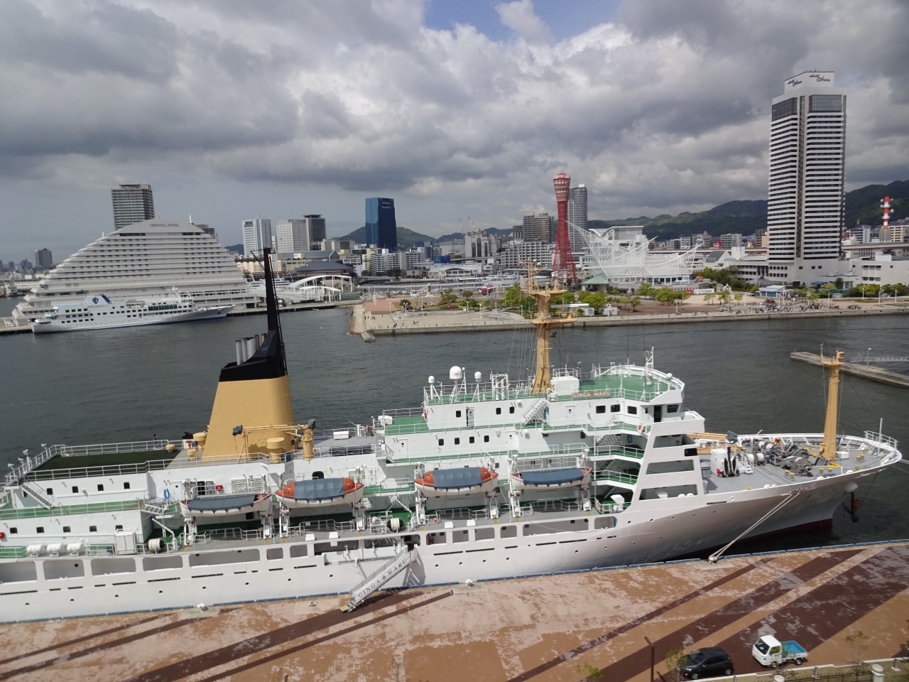 三宮からゆっくり歩いて30分ぐらいかかりました。お天気がいいと海の色もきれいで海風が心地いいです。港からは観光用のクルーズ船が発着してますがそれ以外に大型の船も入港してきます。夜は神戸港周辺のイルミネーションがとてもきれいです。