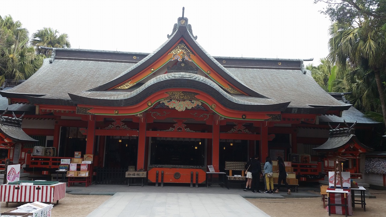 島のほぼ中央に鎮座する神社で周囲1.5kmの青島全体が境内になっています。