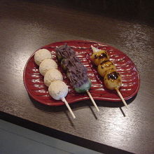 散策も楽しめる温泉地として人気が上昇している山中温泉に位置するお団子のお店。ゆげ街道沿いにいくつかの店舗が集まっている一角です。小さいお店ですが、イートインスペースがあるので寒い日でも快適。目の前で焼きたてのお団子を出してくれます。