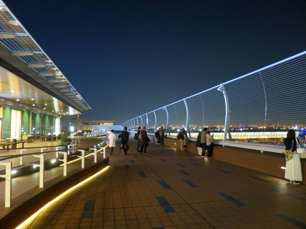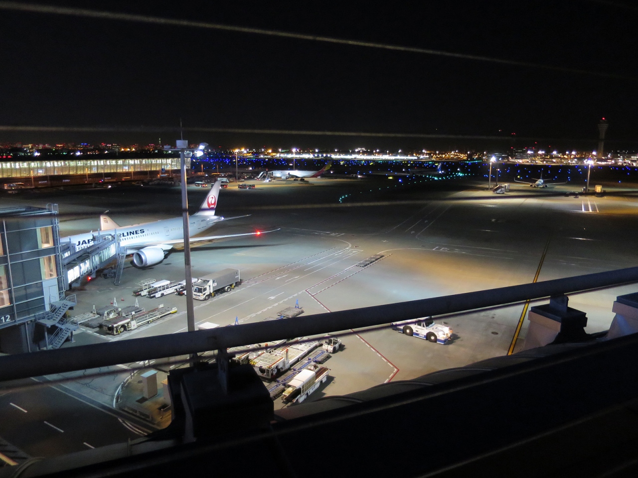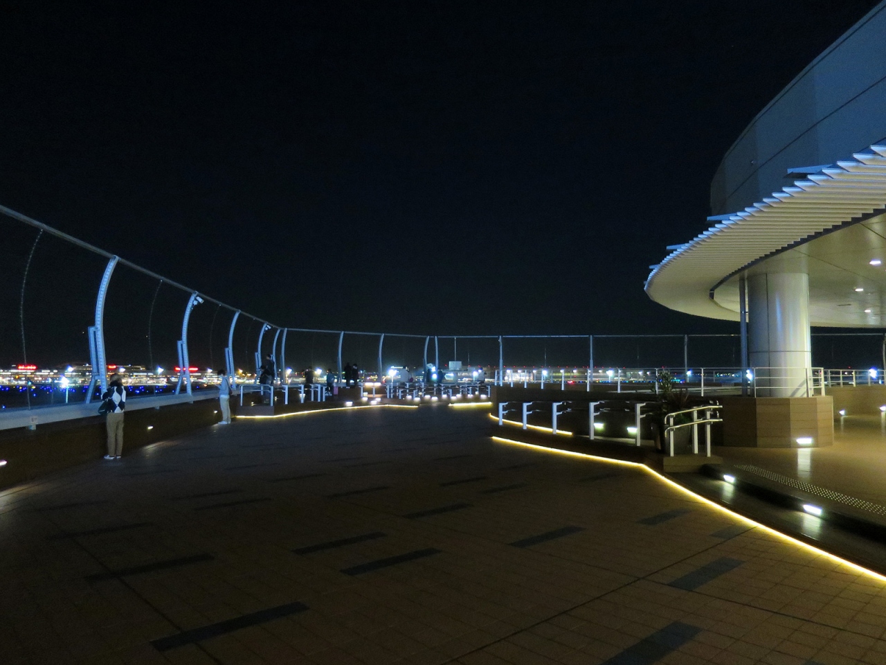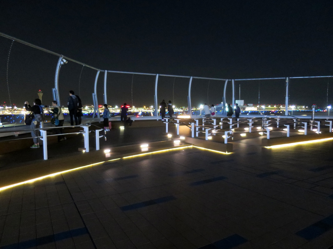 羽田空港からの深夜便利用、今回はちょっと早めに到着して搭乗手続きを済ませ、こちら展望デッキを初めて訪れました。実は夜景好きに加えて飛行機好きなのですが、いつもはは搭乗手続き締切直前の時間に空港に到着するため、今まで訪れる機会がありませんでした。いや~、見慣れた東京の風景のはずですが、とても美しく感じられました。空港周辺には高層建築はありませんので、その空の高さも影響しているのでしょうね。3月末の心地よい気温と澄んだ空気、平日の深夜近くとあって訪れる人も多くなくと、好条件の揃った中でしたので、とても居心地の良い時間でした。もっと居たかったなぁ…。