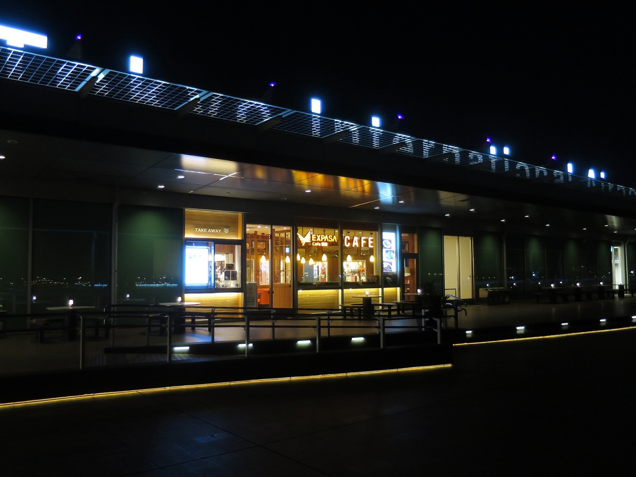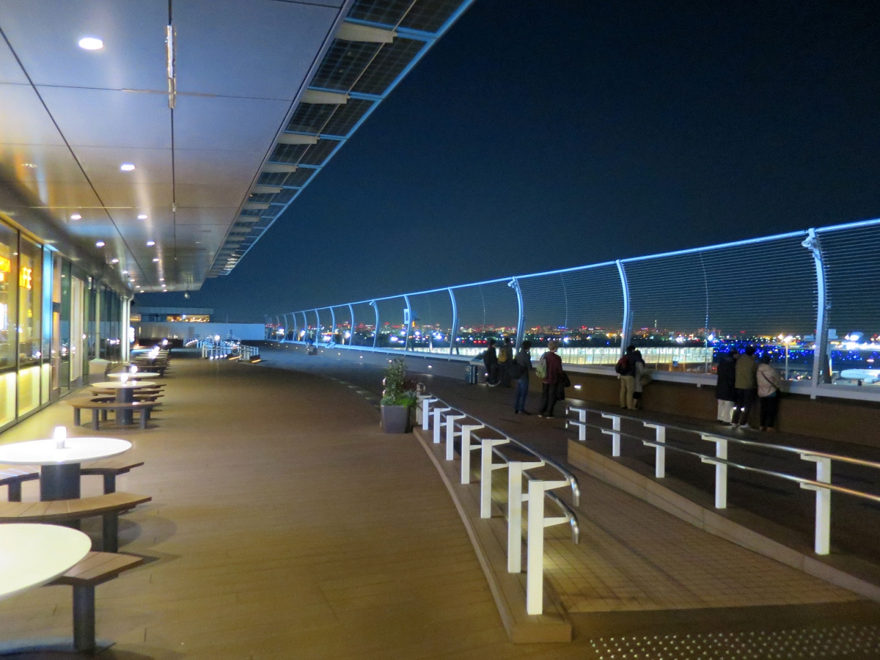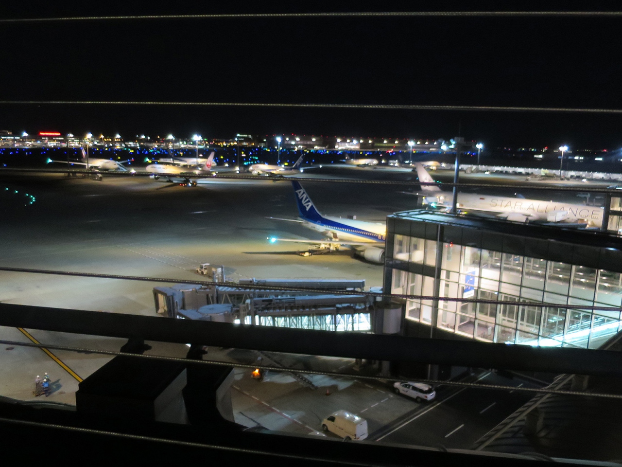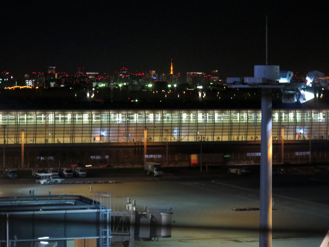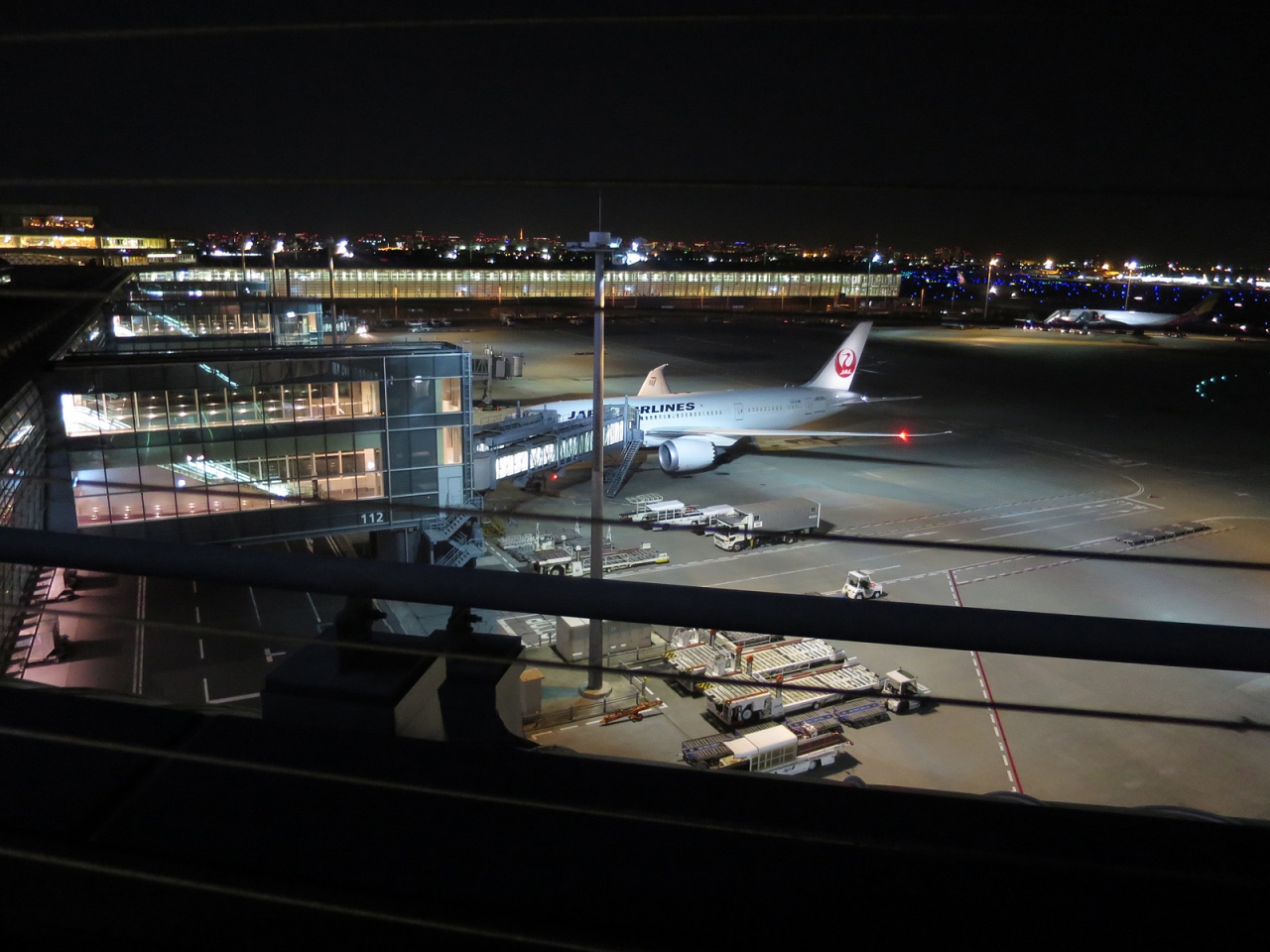 羽田空港からの深夜便利用、今回はちょっと早めに到着して搭乗手続きを済ませ、こちら展望デッキを初めて訪れました。実は夜景好きに加えて飛行機好きなのですが、いつもはは搭乗手続き締切直前の時間に空港に到着するため、今まで訪れる機会がありませんでした。いや~、見慣れた東京の風景のはずですが、とても美しく感じられました。空港周辺には高層建築はありませんので、その空の高さも影響しているのでしょうね。3月末の心地よい気温と澄んだ空気、平日の深夜近くとあって訪れる人も多くなくと、好条件の揃った中でしたので、とても居心地の良い時間でした。もっと居たかったなぁ…。