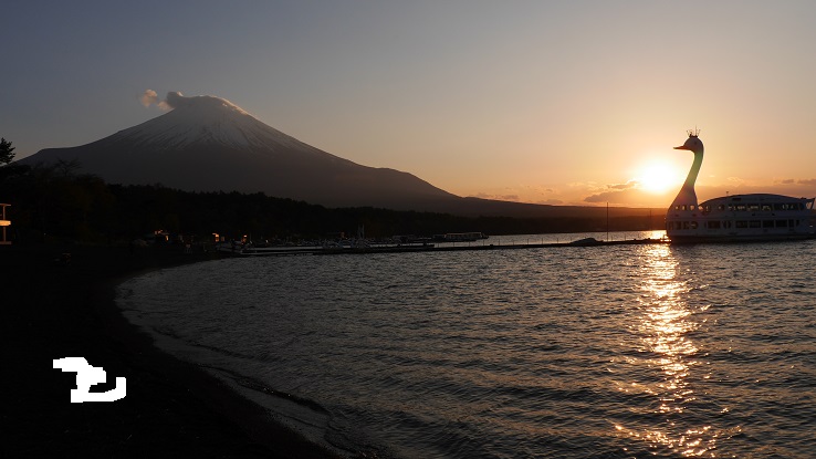 富士山駅から御殿場駅方面行のバスでアクセス。湖の周囲には宿泊施設や飲食、物販施設が点在し観光地化されている印象。ちょうど夕暮れ時のアクセスで夕日が沈むころ。奥には富士山が見られ、日が沈む時間帯の絶景をおさめることができた。水陸両用バスの乗り場も近くにあるようでいつか体験してみたいと思った。