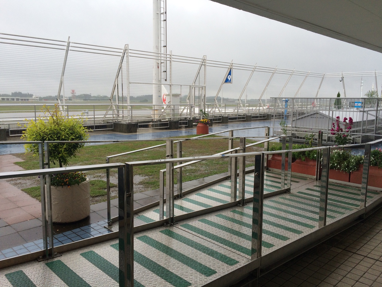 レストランエリアと同じ階の3階にあります。エスカレーターを上り直ぐ右側です。滑走路全体がいこ見渡せ離発着を間近で見ることが出来ます。無料なのも良いですが雨の日に行ったため屋根がなく出入り口付近で眺めました。