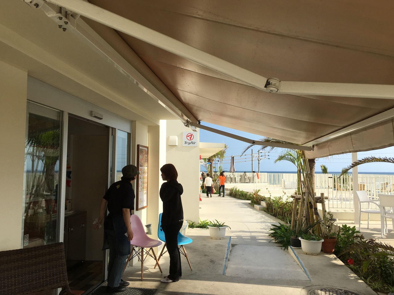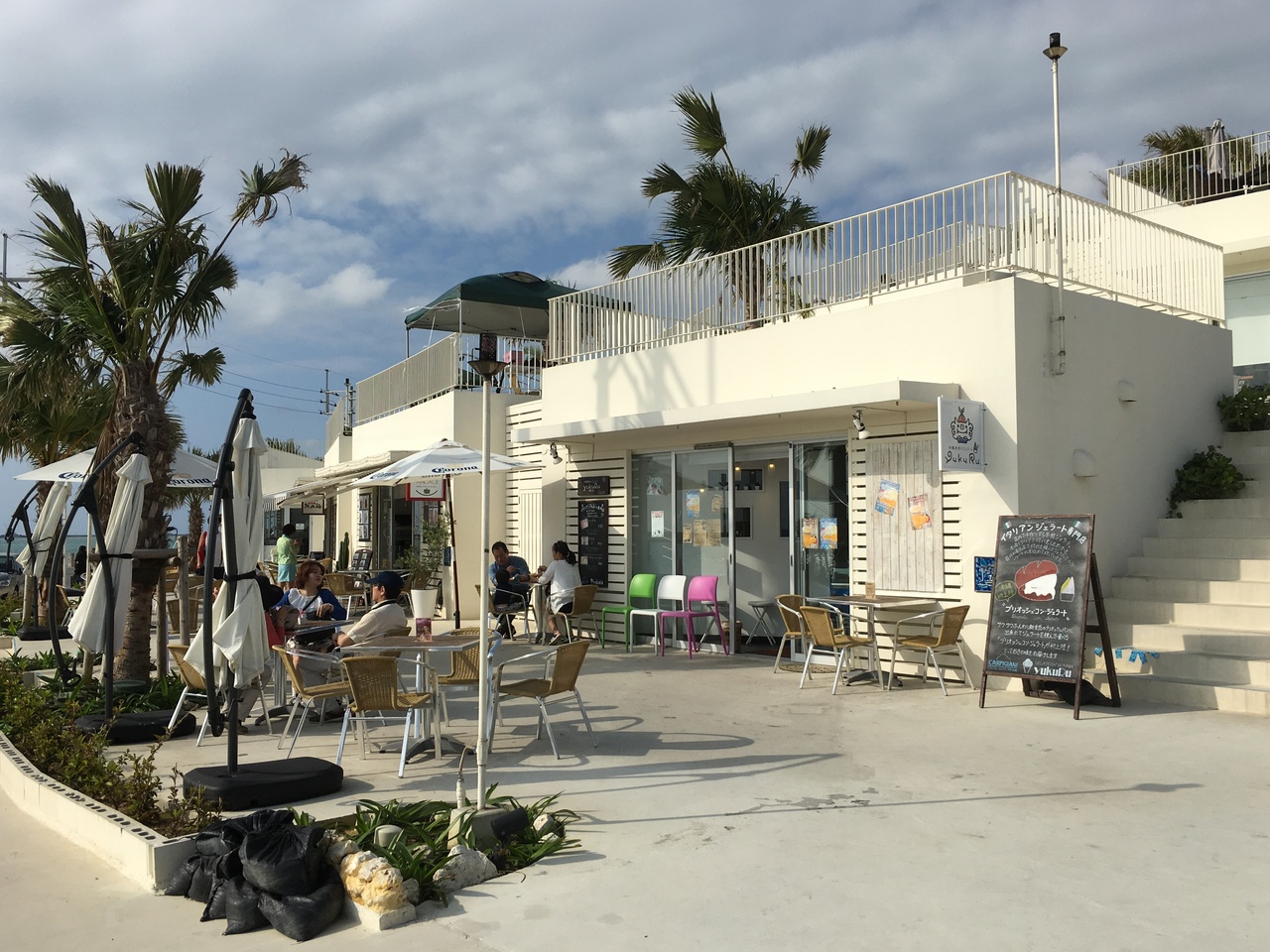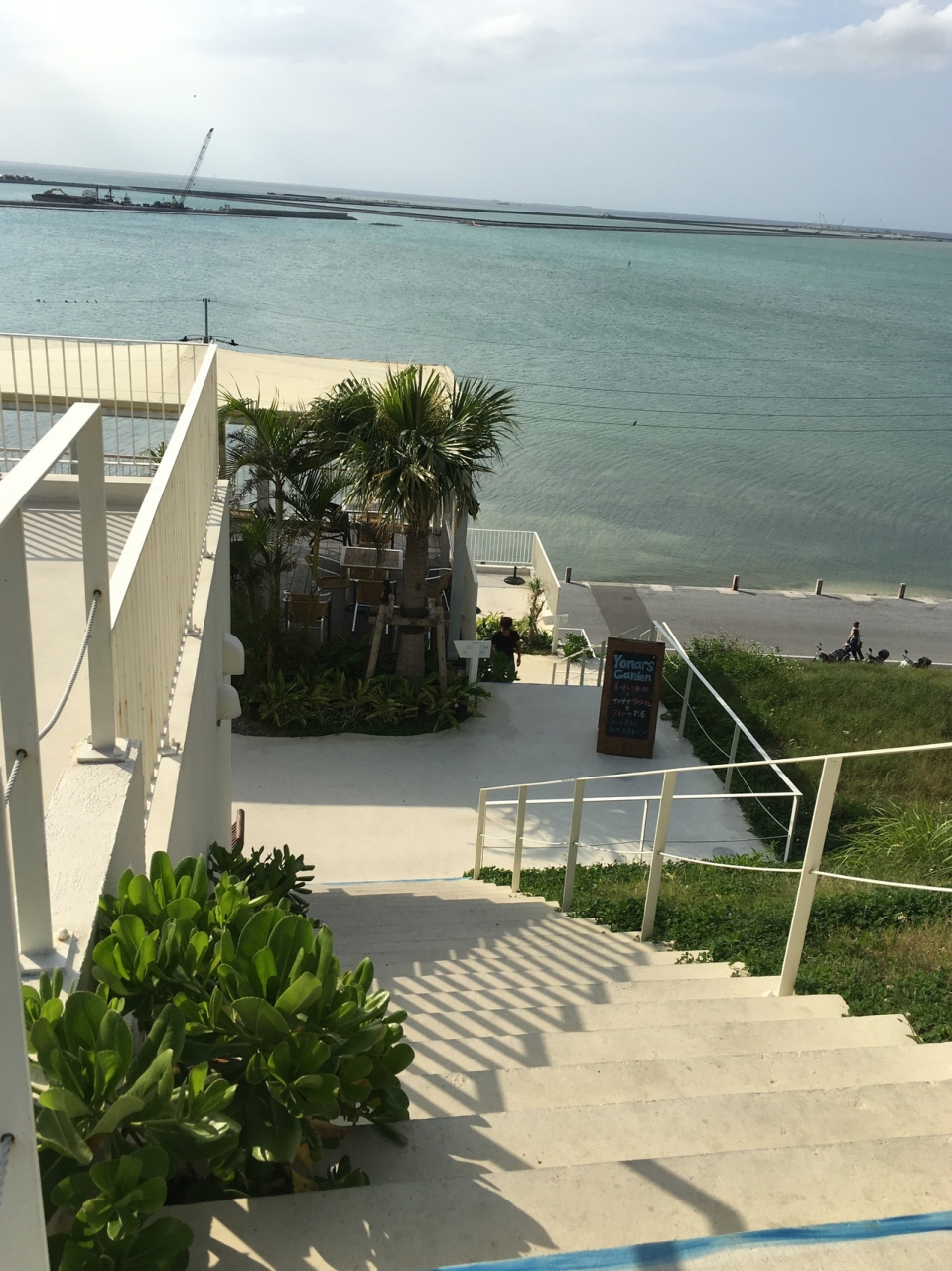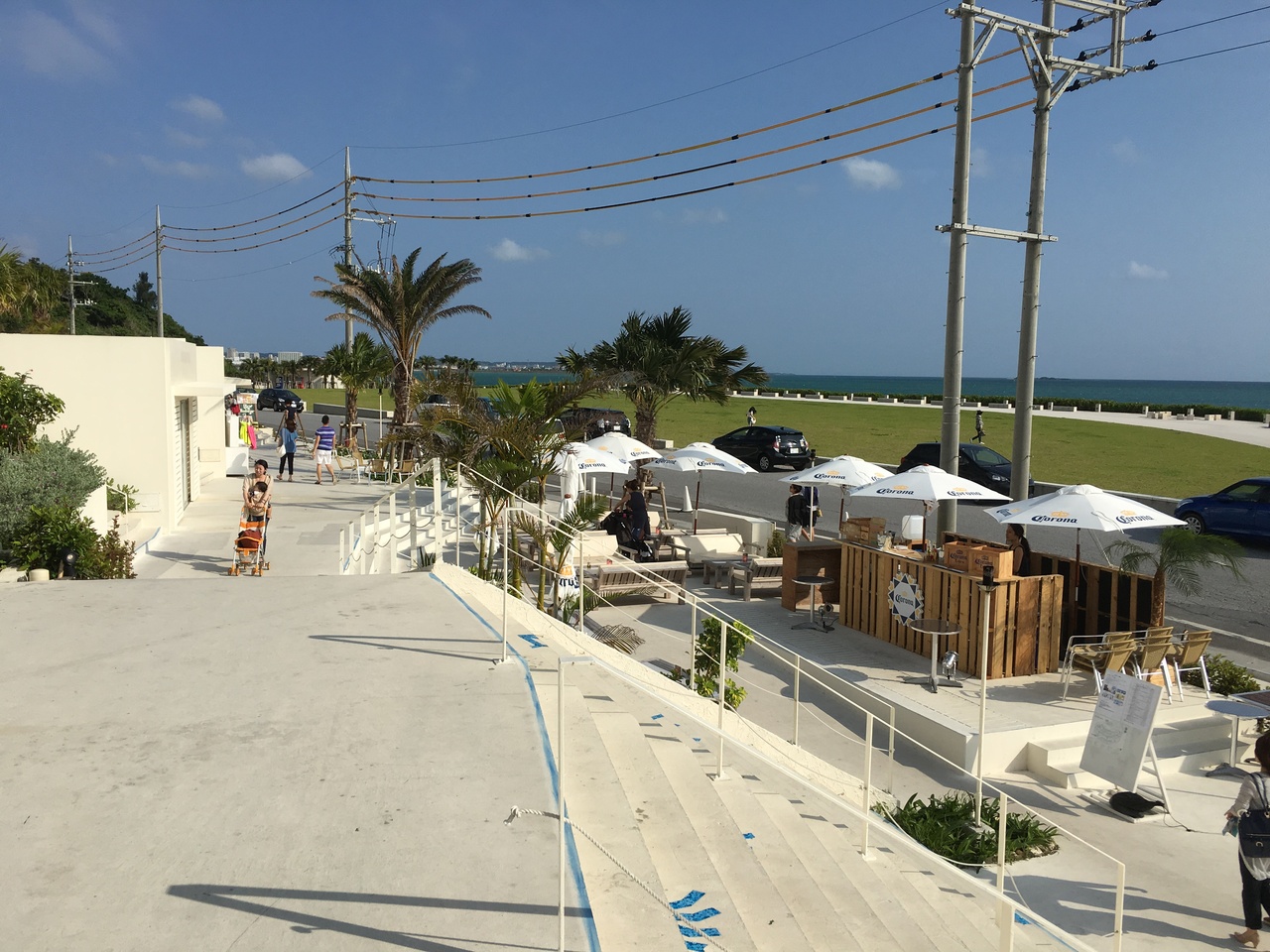 場所は、空港南側すぐの瀬長島にあり各店舗の屋根がテラスになっており階段で繋がっています。