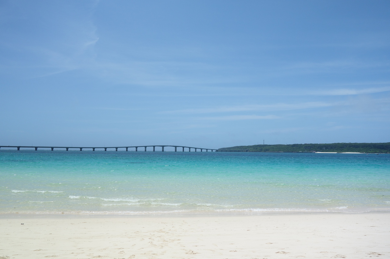 来間島にいくにつれて濃くなっていく青。