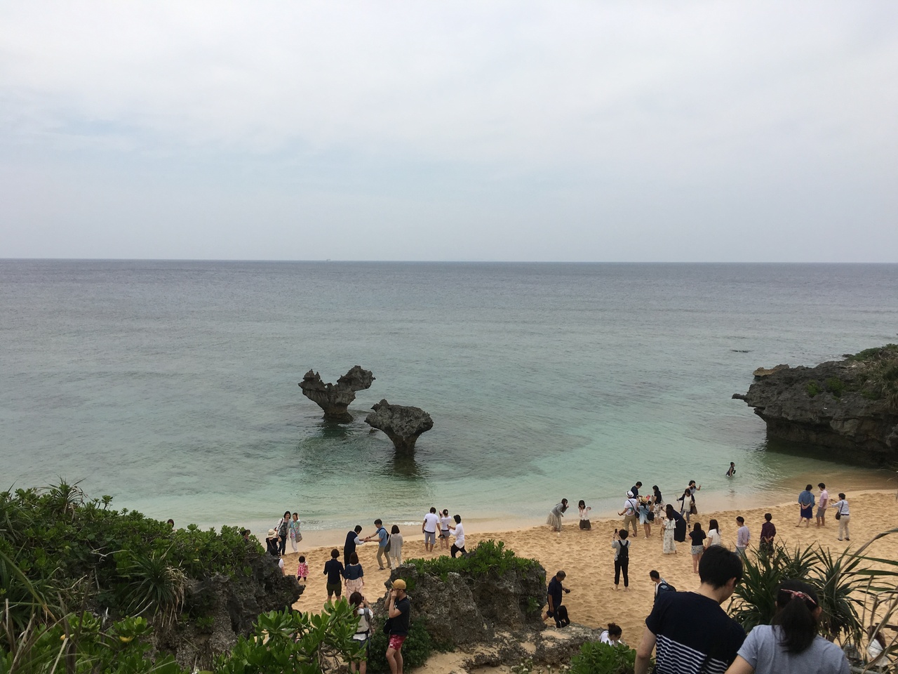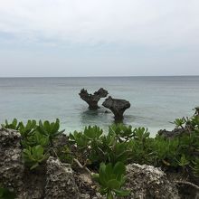 二つの岩が見る角度により逆さハートやシングルハートに見えます。