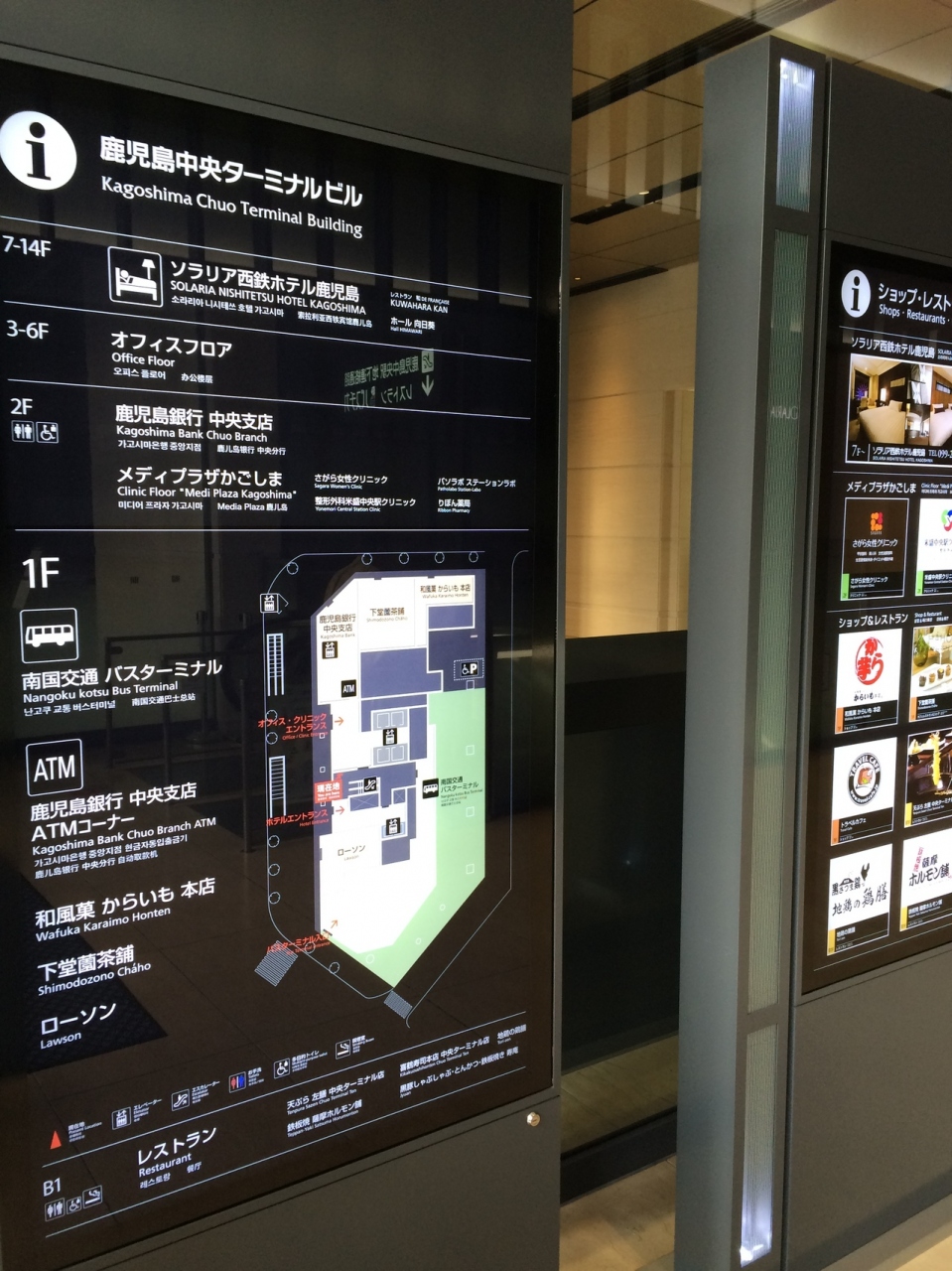 鹿児島中央ターミナルビルの1階にあり窓口と自動券売機があり上層には路線と時刻の記載があり時刻表も置いてあります。縦長のエリアにあり椅子はあまりないです。真向かいに旅行会社もありホテルのフロントのような雰囲気でした。