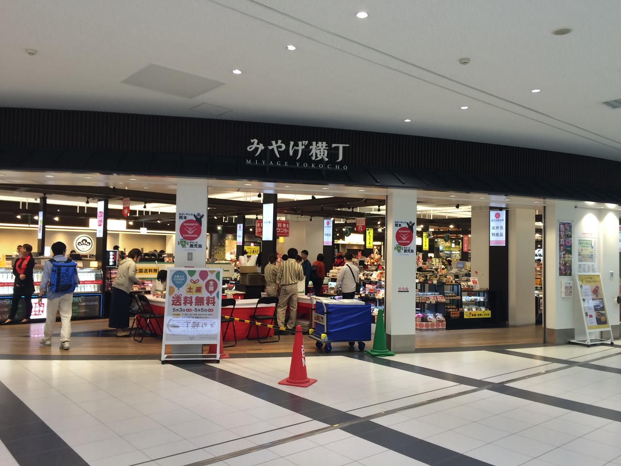 鹿児島中央駅の改札前にあリ土産店が連なっています。ドアや扉がないので入りやすいです。鹿児島のあらゆる土産が売っている感じで新幹線に乗る人は、ここで買えば荷物にならないで最後の鹿児島観光を楽しめるところです。