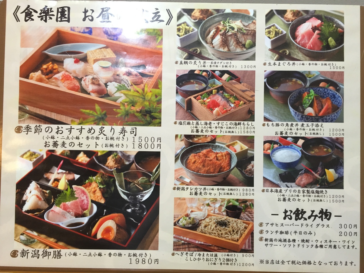 表参道ヒルズの裏にある新潟物産店の食楽園でのランチ。立地は抜群ですが、若干、地下にある食堂への入り口がわかりにくいです。物産店の中に進んで右手奥にある地下に伸びる階段を降りていったところにあります。
