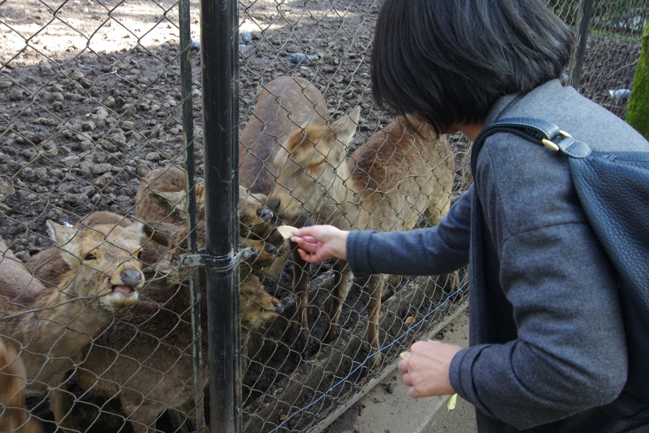 今回来て初めて知ったのが、鹿が居ることです。鹿せんべいがうまいのか、おなかが空いているのか、すごい勢いで集まってきました。