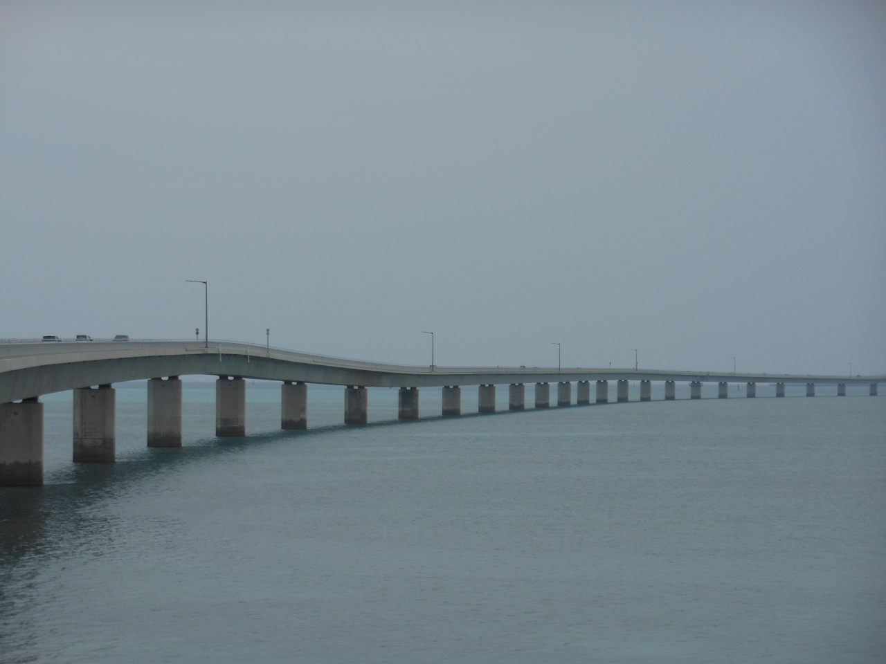 宮古島と伊良部島を結ぶ長さ3540メートルの橋で、無料で通行できる橋としては日本一の長さ。