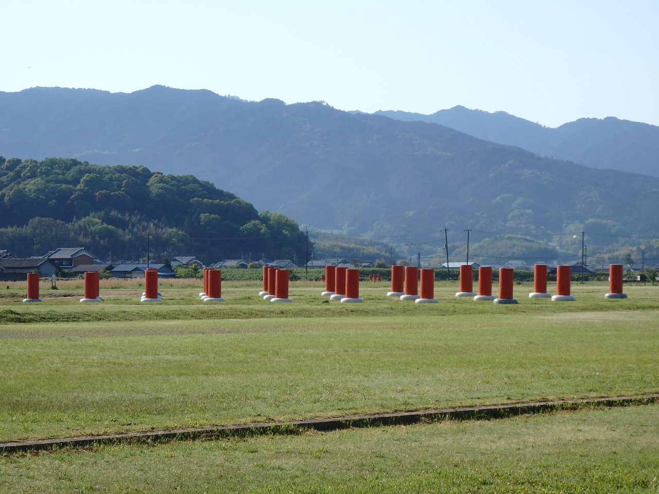 藤原宮跡は現在広い野原になっていますが、内裏跡には(足元だけ)赤い柱群が建っているので、ここに宮があったんだなと感じることはできます。