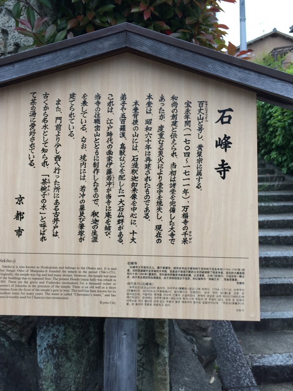 伏見稲荷大社の帰りに石峰寺に寄りました。駅から、10分くらい道路沿いを歩いて行きます。伏見稲荷大社と違ってきてる方達はすごく少なかったです。伊藤若冲さんのお墓があり、若冲が下絵を描いたといわれている、石を掘られた動物達が竹林の中に数多くありました。