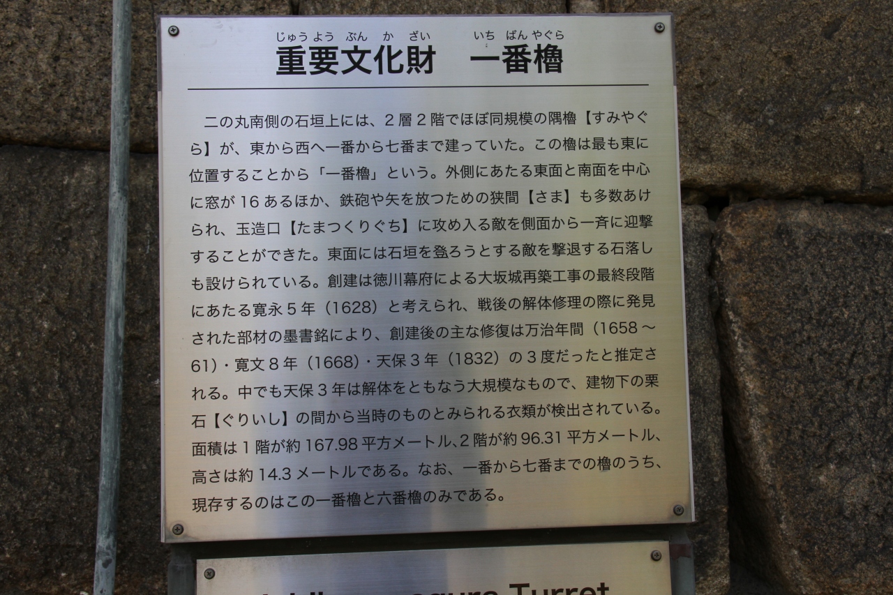 玉造門を入り、しばらく歩くと左手前に入れるところがあり、その一番奥に一番櫓はありました。