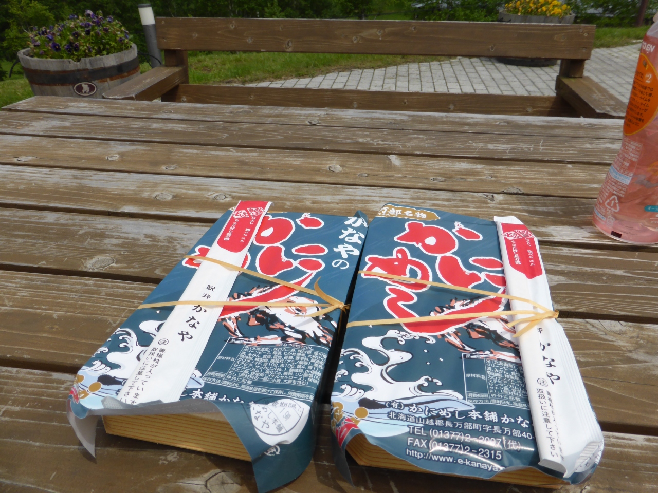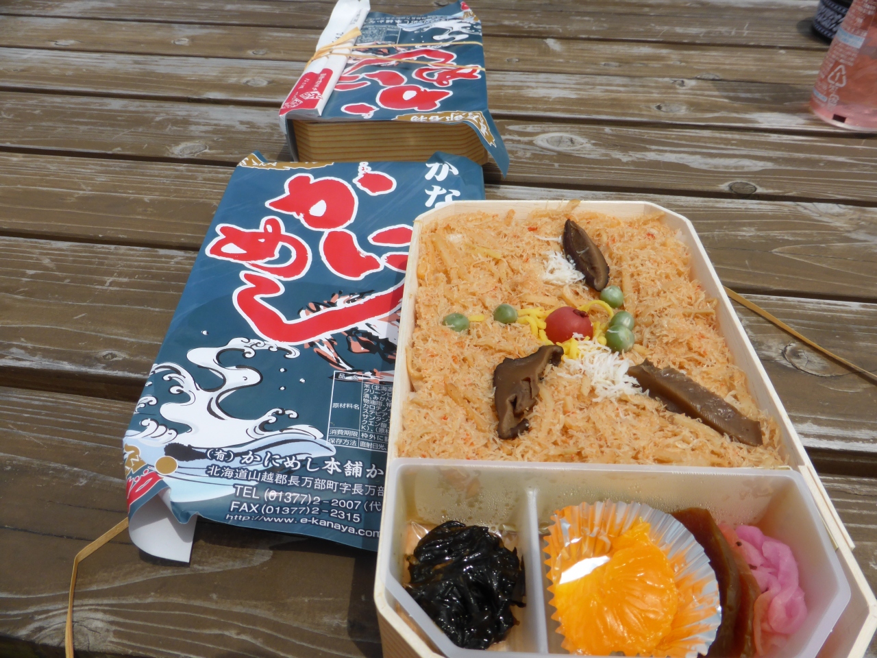 道南旅行のお供に最適です。長万部の駅にレンタカーを置いて歩いて2分のかに飯本舗へ行きました。店内に誰もおらず、声をかけるとおそろしく無愛想なおにいさんが出てこられ、思わず笑い出しそうになりました。前の通りは人影がなく静かでしたからツアー客や予約客の駅への配達以外、店頭で購入する人は限られているのかもしれません。懐かしい昭和の駅弁というキャッチフレーズをつけたいと思います。