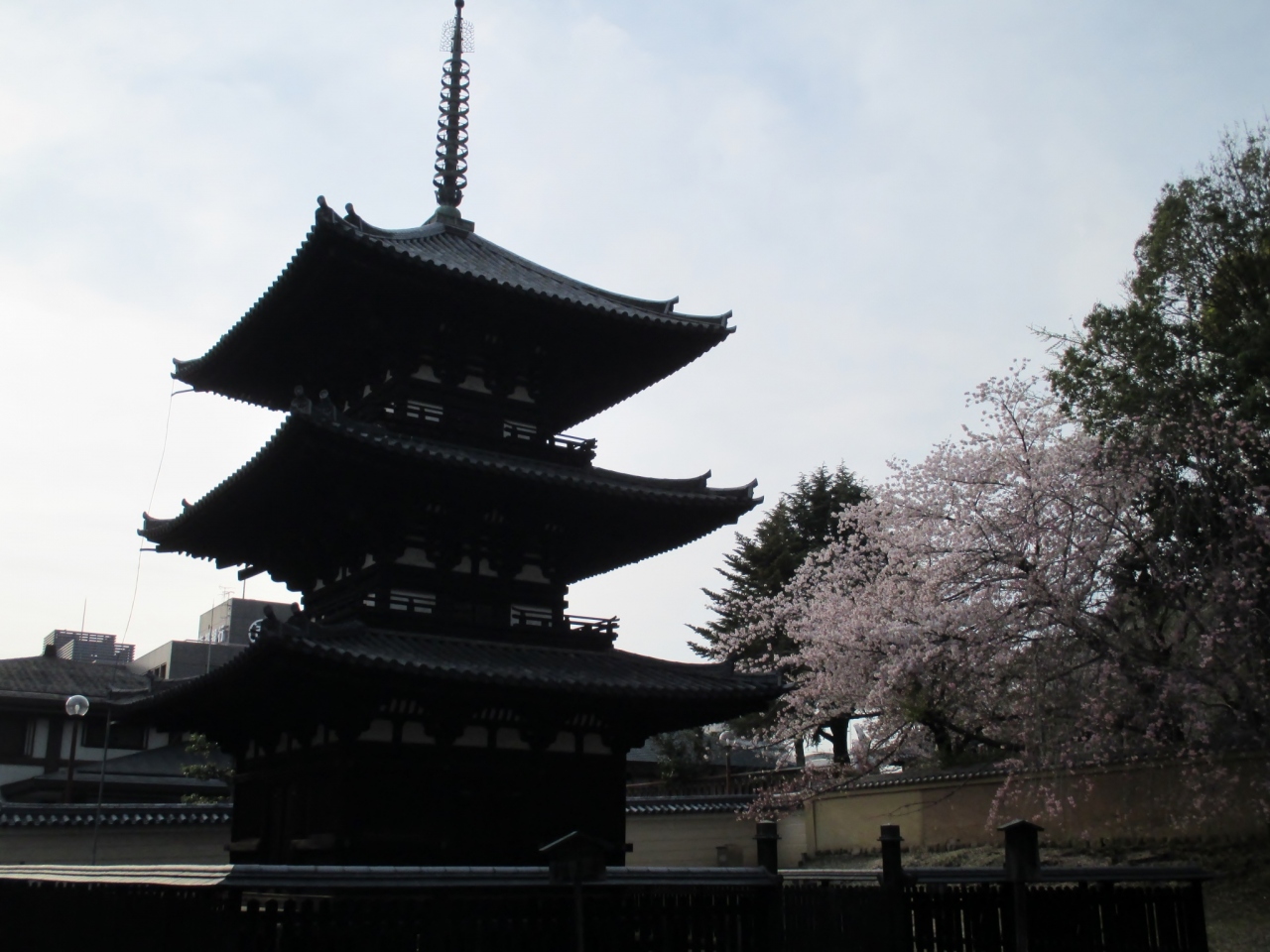 興福寺境内にある三重塔です。どうしても五重塔がメインになりがちですが、横の方に静かに佇んでいる三重塔も、ひっそりと趣き深いです。五重塔に比べて、団体さまのお通りが少ないので、ゆっくりと静かに眺められるのもうれしいです。