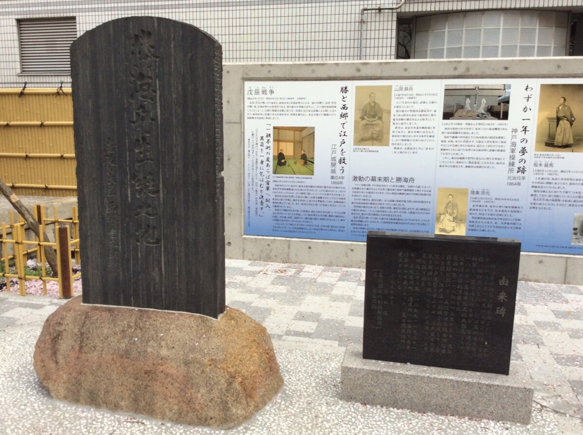 両国小学校の隣にある両国公園の一角に記念碑と勝海舟に関する紹介ボードが掲げられています。隣の小学校の生徒や近所の幼稚園の生徒たちが教師の引率で来ていました。展示自体はシンプルなものであまり人目をひくものではありませんでした。