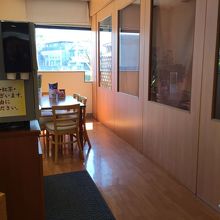 店内にはテーブルがあり、飲み物が無料でいただけるサービスもありました。