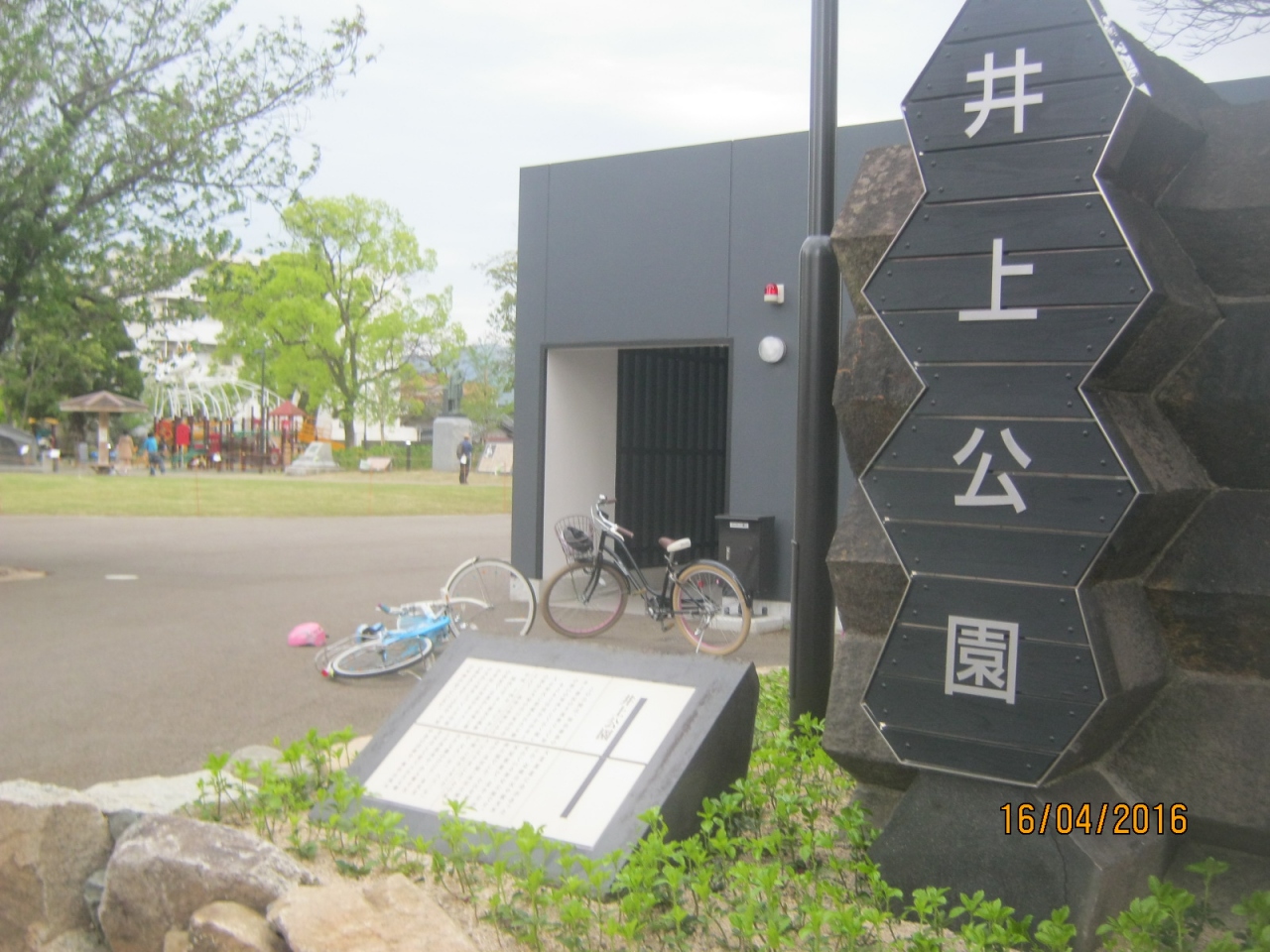 湯田温泉駅から温泉街に行く道の途中にあります。ホテルニュータナカの南側に位置する公園です。この公園は井上馨の生家の跡に作られました。公園内には足湯があります。また句碑や歌碑などのこの湯田温泉にゆかりの人物のものがあります。