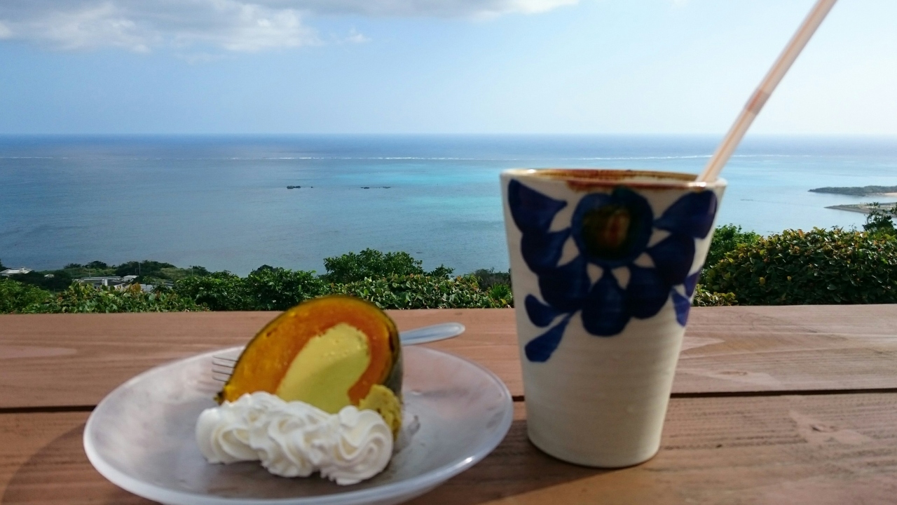 阿嘉島からの帰り、沖縄本島をちょこっと観光。ウミカジテラスに行ってニライカナイ橋を見た後に、有名なカフェくるくまでお茶しました。