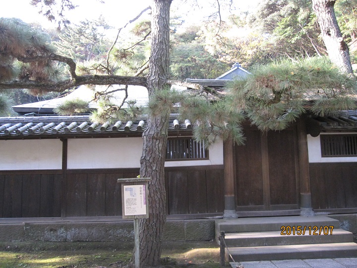 高い塀で囲まれて、内部をうかがうことが出来ませんが、隠居所として建てた数寄屋風建築で、建物の構造は単に居宅としてだけでなく、美術品の鑑賞や接客などの目的を兼ね備えた配置や間取りになっているようです。