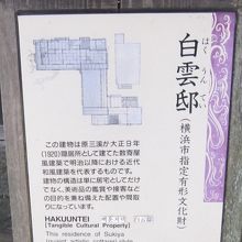 白雲邸は、大正9(1920)年に造られた建物で、原三溪が、家族と暮らした鶴翔閣から離れ、亡くなるまでのおよそ20年を夫人と過ごした住まいです。