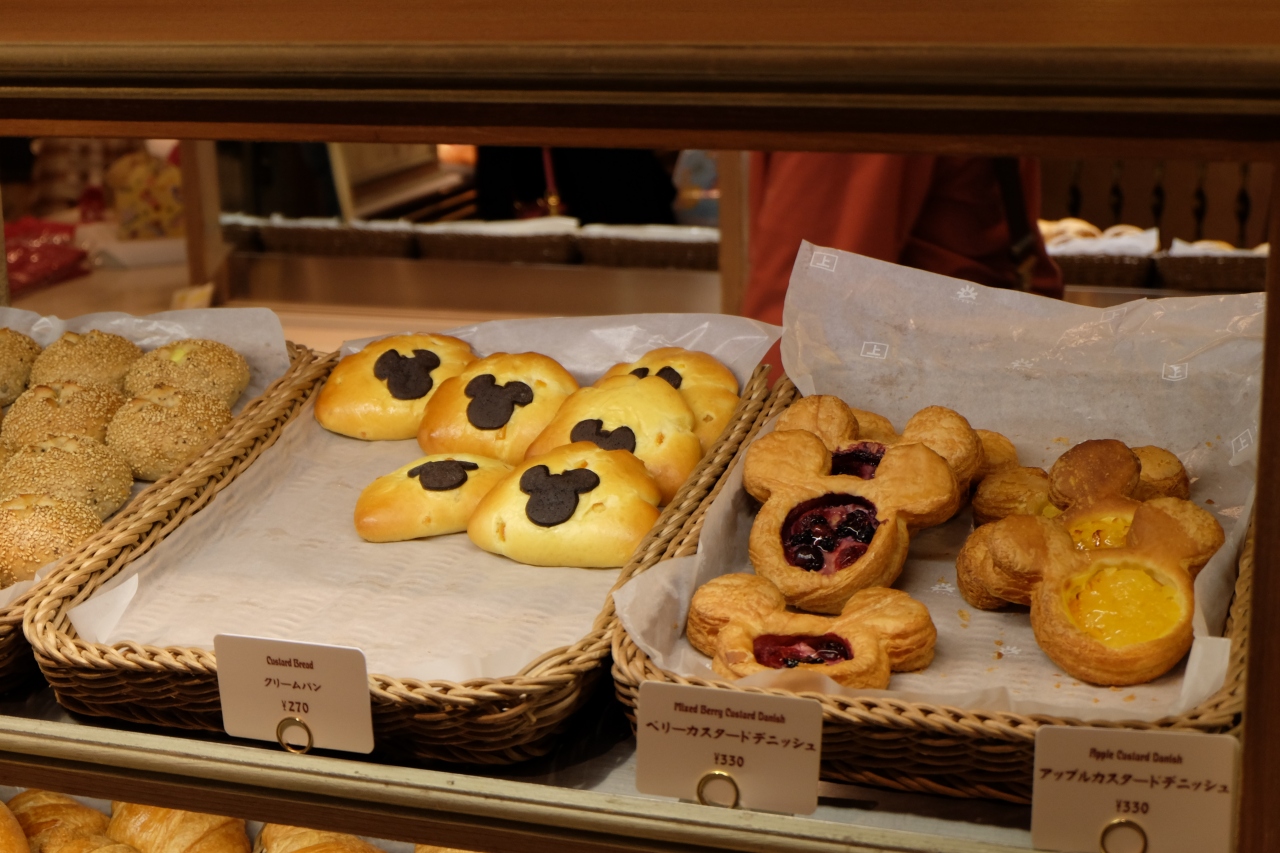 ディズニーシーの中にあるパン屋さん。ミッキー型のデニッシュやクリームパン、マフィンなどがあり見ているだけでも楽しく、パン自体もとてもおいしいです。テラス席で食べたり、持ち帰りもできるので、朝ごはんなどにとても便利です。