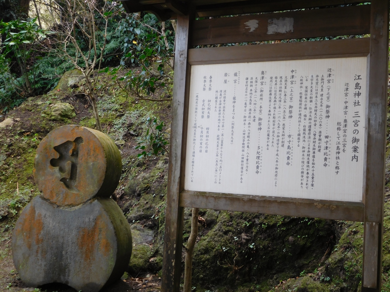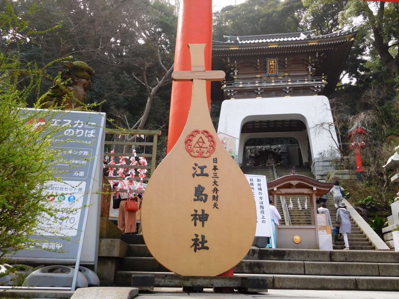江の島内には、辺津宮・中津宮・奥津宮の三社があり、この三社を総称して「江島神社」と言います。また、日本三大弁財天の一つに数えられています。主祭神は、江島大神(多紀理比賣命、市寸島比賣命、田寸津比賣命)です。江島神社の御朱印は、辺津宮の右側にある社務所で頂きました。