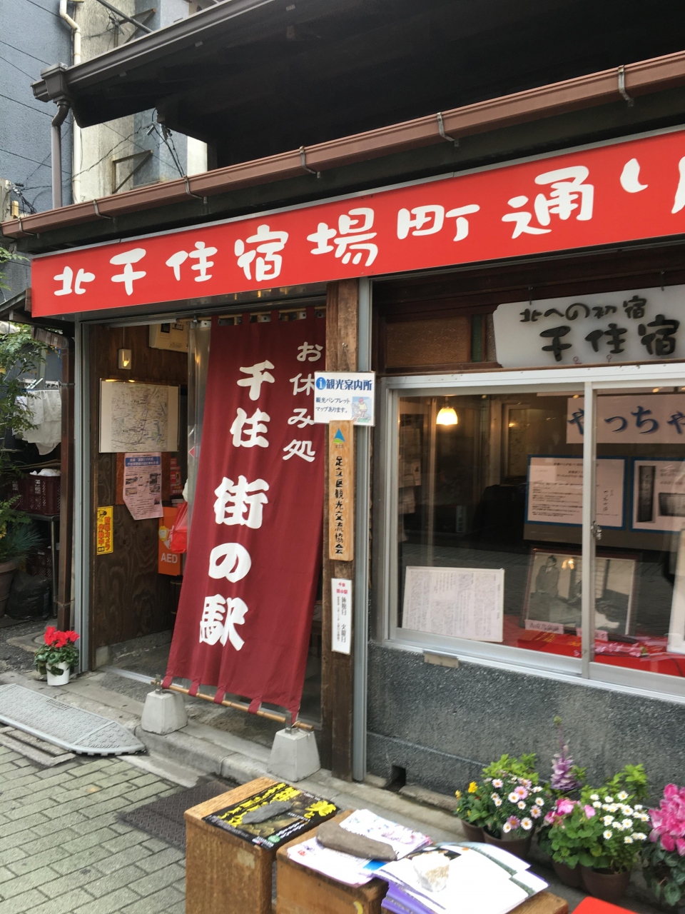 北千住の宿場町商店街にありました。休憩所のようになっていて、中には足立区の観光案内やパンフレットが揃っていました。イベントの案内や地図もあるので、街歩きの前に立ち寄ると便利ですね。休館日は火曜日だそうです。