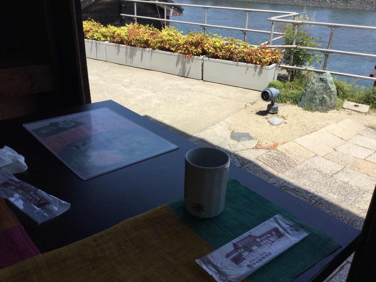 店内の雰囲気は良かったです。窓辺からは宇治川が。