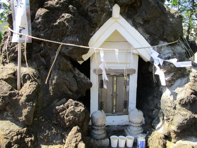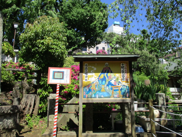 鳩森八幡神社鳥居をくぐり境内の中央部に円墳形の富士築山があります。富士築山は円墳形に土を盛り上げ、溶岩、クマザサ、洞窟、烏帽子岩等や頂上には奥宮まで再現されてます~