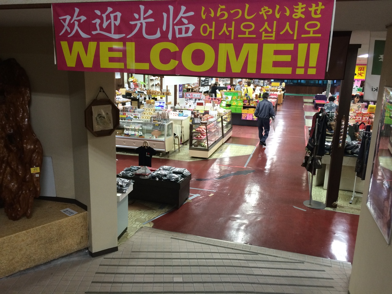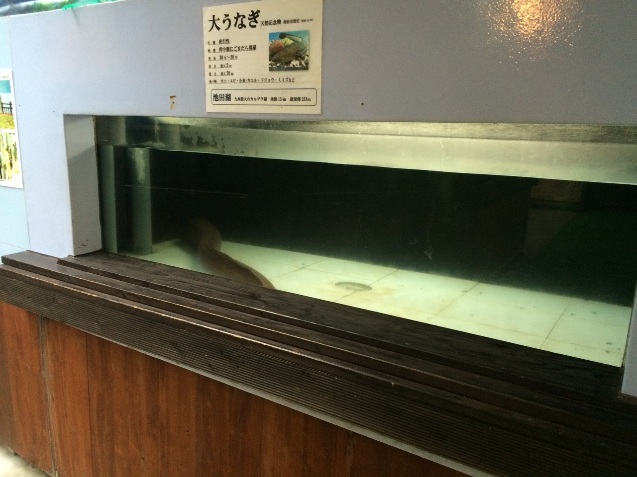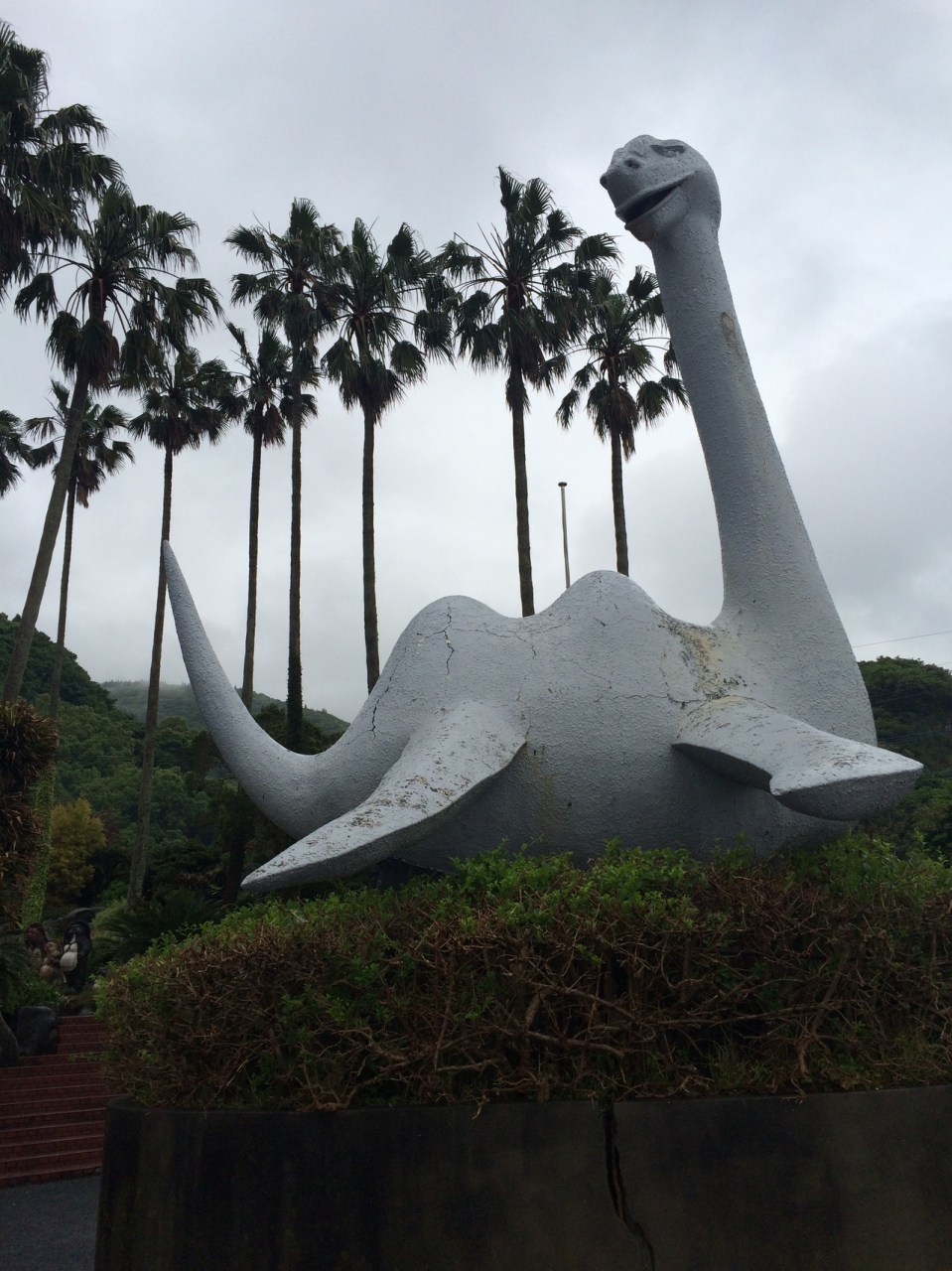 広い池田湖ですが観光スポットの一つです。土産・レストランの建物の横にはネッシー像が建っています。土産屋は広く、200万円する屋久杉まで売っていました。2階はレストランで池田湖を眺めながら食事が出来ます。