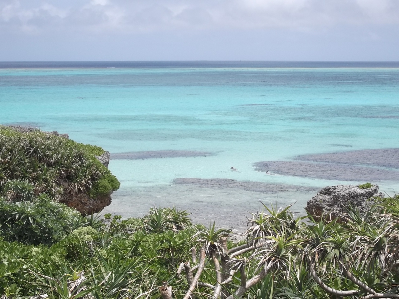 池間島を1週し湿原入口で車を止めたが、時間がないので湿原には行かなかった。湿原入口の駐車場脇に小さな展望台があり、ここから見渡す珊瑚礁のビーチはとてもきれいだった。シュノーケルをしている人が何人かいたが、うっかりすると通り過ぎてしまいそうなところで、穴場の雰囲気。