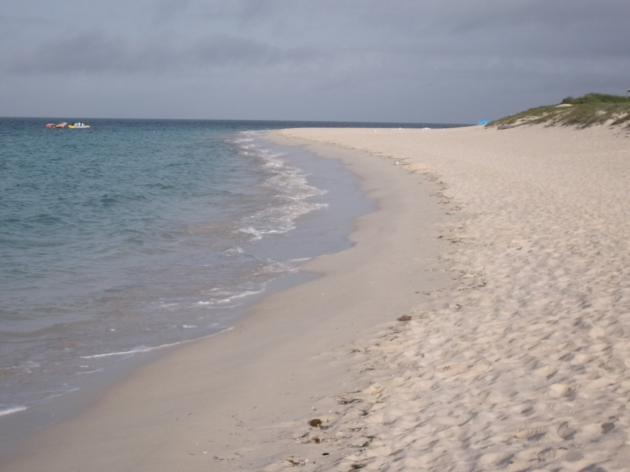 白砂のビーチは確かにきれいであったが、当日は風がとても強く水面は波立っており、遠浅のエメラルドグリーンの景色を見られなかったのが残念。