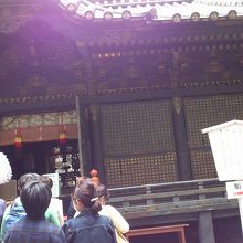 眠り猫を鑑賞した後に、その先の坂下門をくぐって200段もある長い石段を上ったところにある黒漆塗りの建物です。江戸時代は将軍だけが、この建物に上がることができたそうです。この裏には家康公のお墓の宝塔があります。