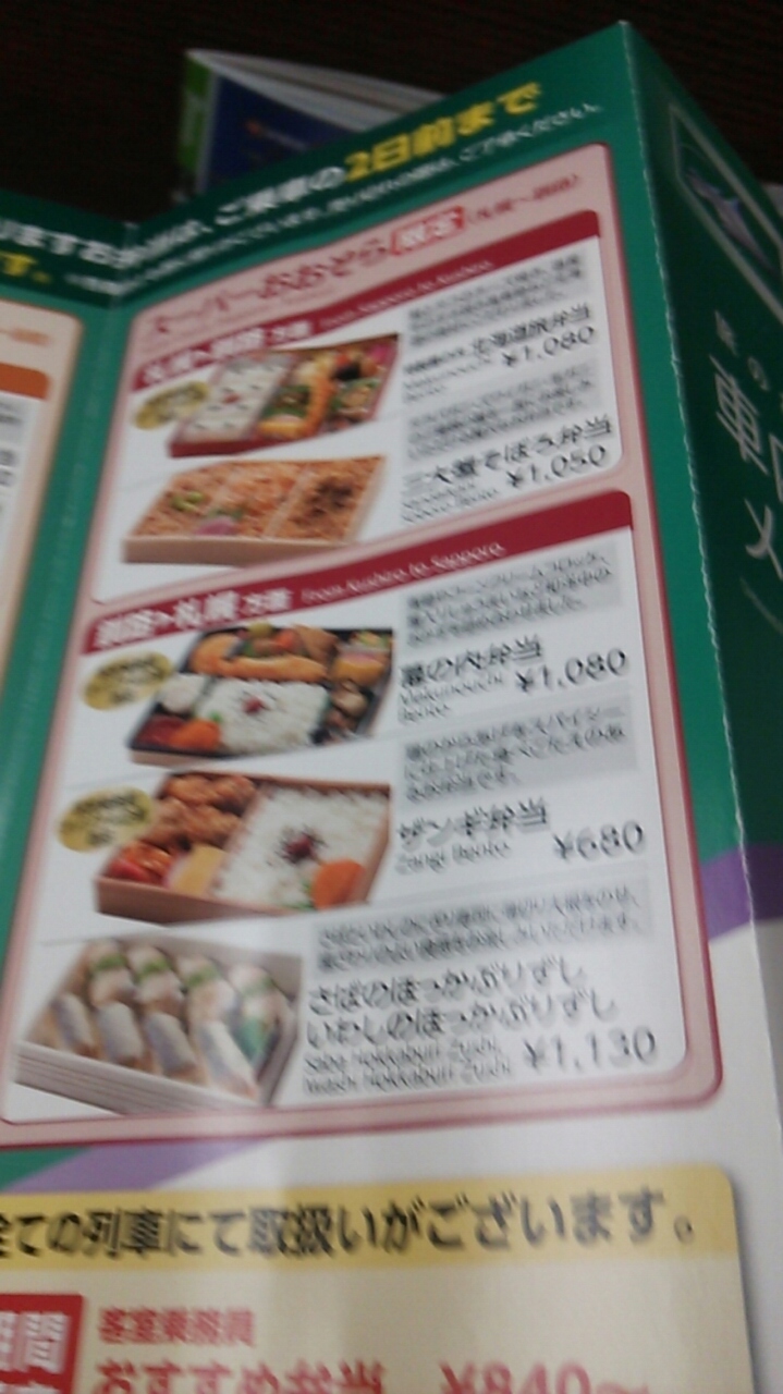 参考までに2015年5月6日時点ですが、月替わりアイスクリーム(5月)は「とうもろこしアイスクリーム」、客室乗務員お勧め弁当は「貫田ジェフの道南旅グルメ弁当」となっていました。