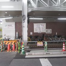 JR神田駅西口のところの道路をまたぐ、鉄道のための架道橋です。自転車がたくさん停められていたりしてあまり綺麗な感じではありませんでした。架道橋の下は、西口の入口がある程度で店が並んでいるというわけでもありませんでした。
