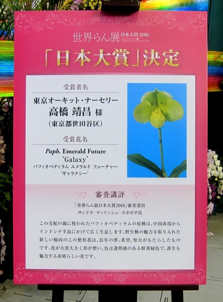 世界らん展日本大賞実行委員会主催の洋蘭、東洋蘭、日本の蘭など世界各地のさまざまなジャンルの蘭を一堂に集めた「世界らん展日本大賞2016」が2016年2月13日(土)~19日(金)までの7日間、東京ドーム(東京都文京区)で開催されました。世界20数か国が参加し、約3000種、約10万株、250万輪以上の蘭が展示され、世界を代表する蘭の祭典です。