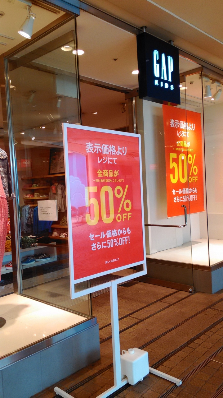 GW中だったせいか50%引きセールしていました。入口付近はレディース、奥に行くとキッズ&ベビーがあり、売り場が広いので商品が充実しています。