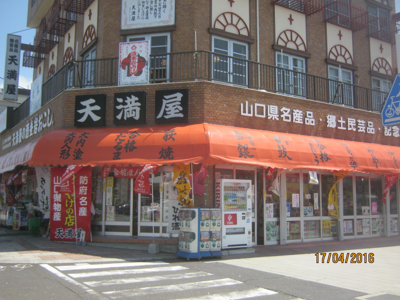 防府天満宮の大鳥居の向かいの角にあります。天神商店街の北の端になります。お土産用の品物が並んでいます。この天満屋はお土産や防府の産物などを販売しています。また食事などもできます。時間があれば立ち寄ってみてもいいです。