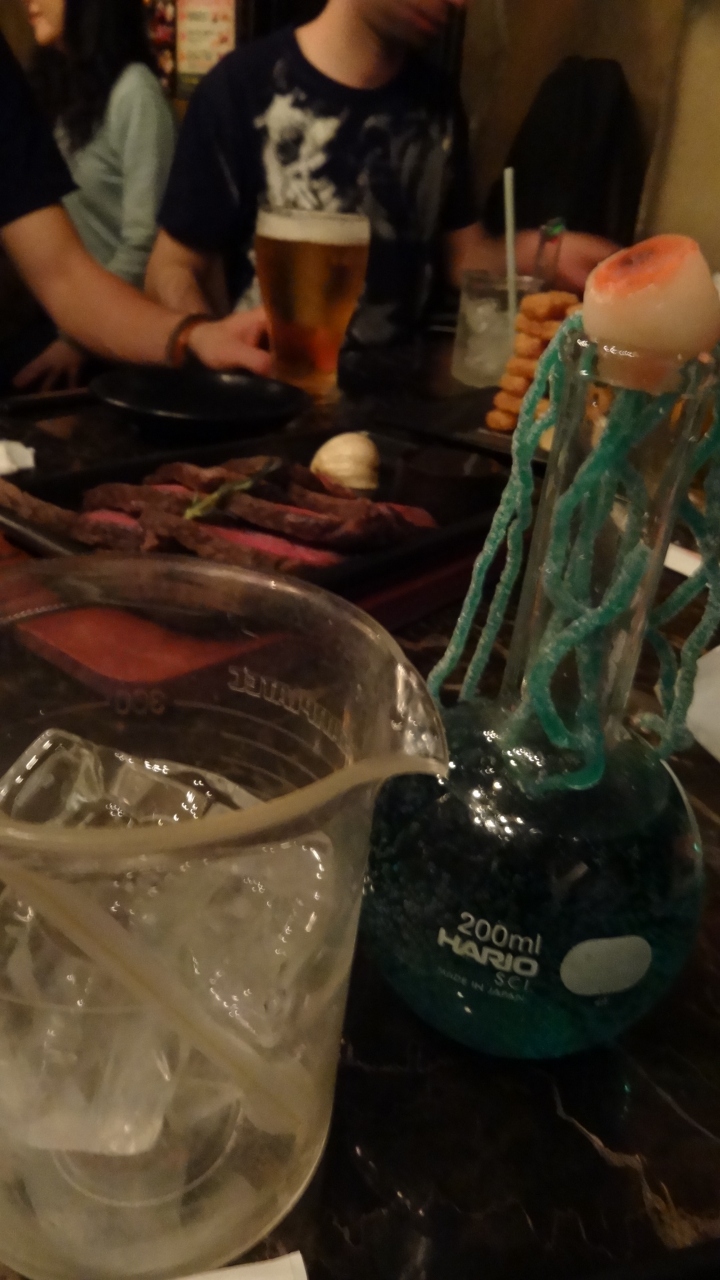 ここのザ・ロックアップ渋谷店は、渋谷の道玄坂二丁目の交差点の近くにあります。イベント的なお店で、お客さんが牢屋に入ってグロテスクな料理屋恐怖を感じる、というのをコンセプトにしているみたいです。食事中に二回も電気を消されて大声で叫んで怖がらせられる、刑務所内にゾンビが逃げたという設定のお芝居に参加させられました。ぜんぜん落ち着いて食べれないし、楽しめるのは19歳くらいまでかな?と思いました。