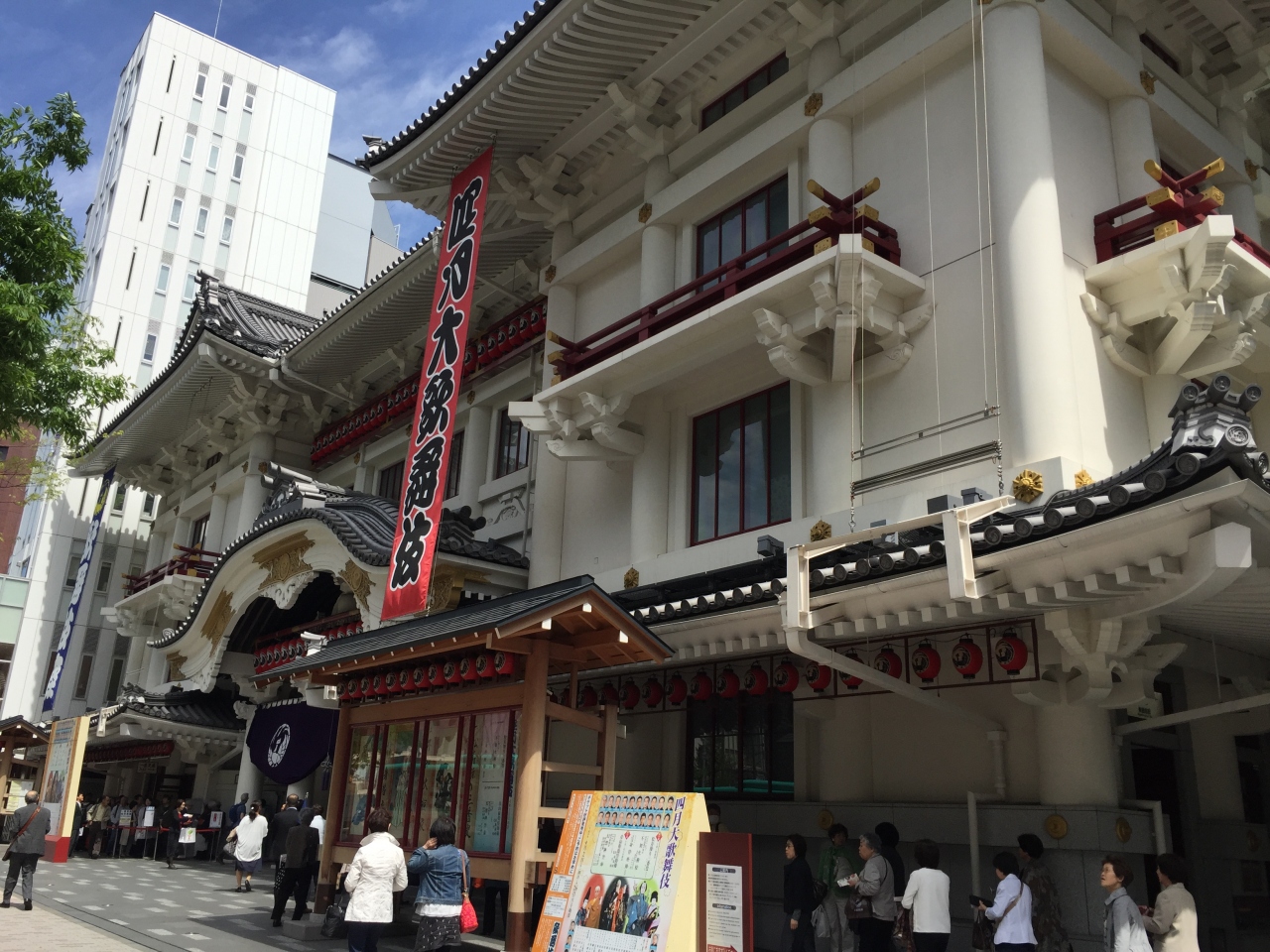 地下鉄から降りると歌舞伎座のB1にでます。ここではお土産からコンビニ、お弁当など揃いますが、お弁当は入り口付近のお店が一番混んでます。オススメを聞いてみたら、歌舞伎座の厨房で作っているお弁当が1500円と割高ですが、次回はそれを食べてみたいです。入場はエスカレーターで1Fへ行き、正面玄関から入れます。また、1幕だけ見たい方は、入り口左に並ばれていますが、演目ごとの販売となります。